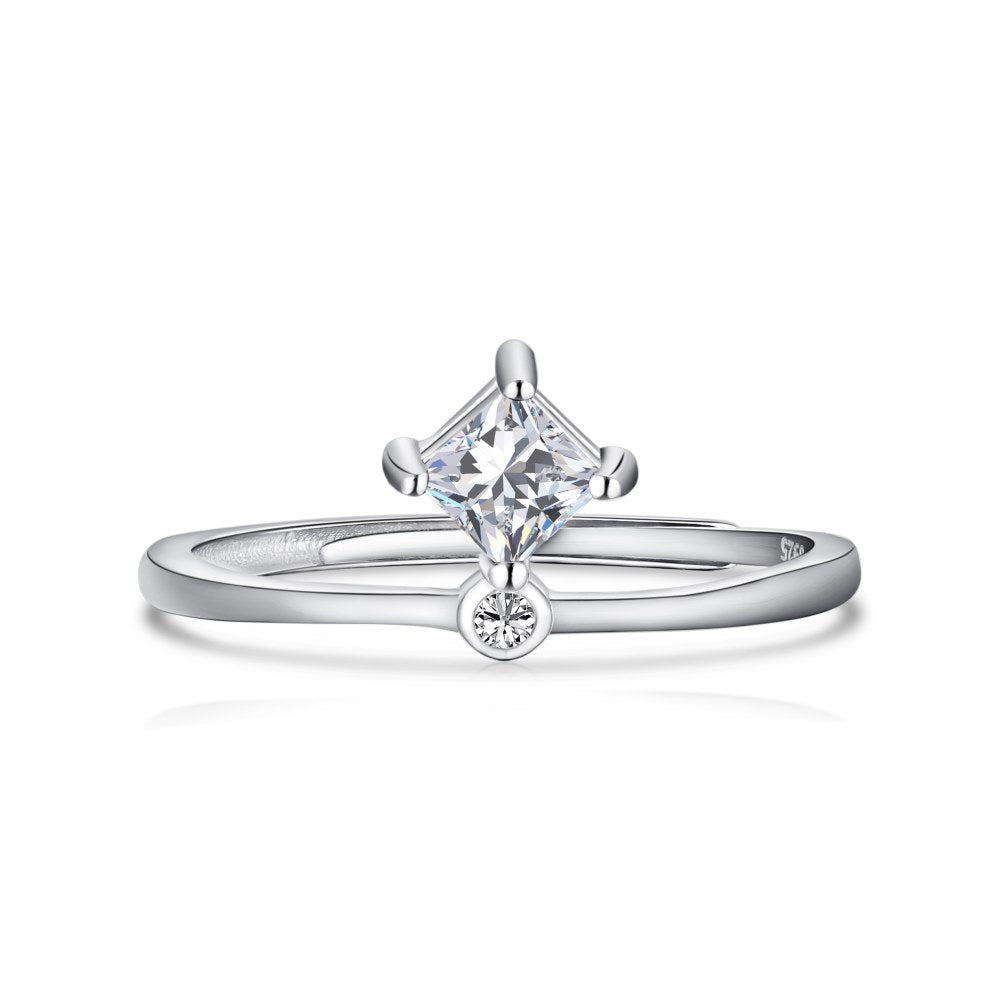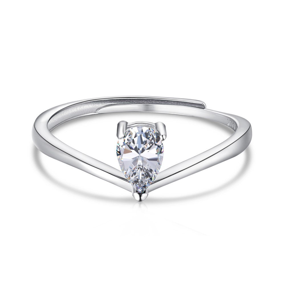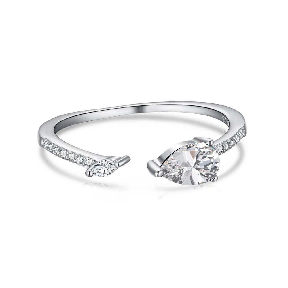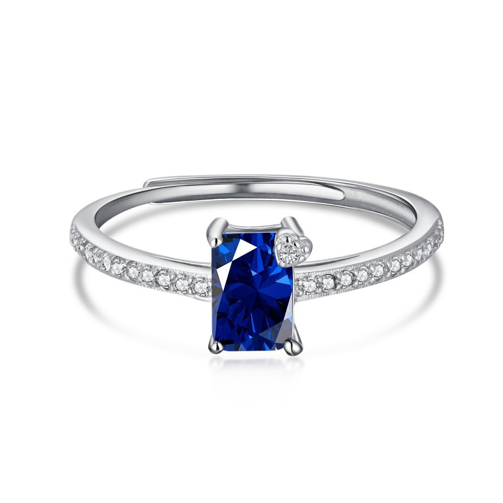 Elegant Multicolor Zircon Adjustable Sterling Silver Open Ring