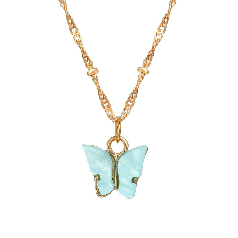 European Acrylic Butterfly Pendant Necklace with Creative Pearl Clavicle Chain
