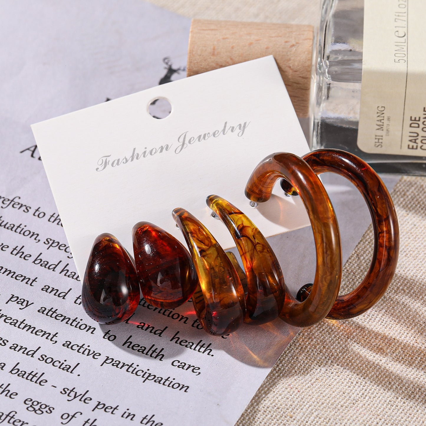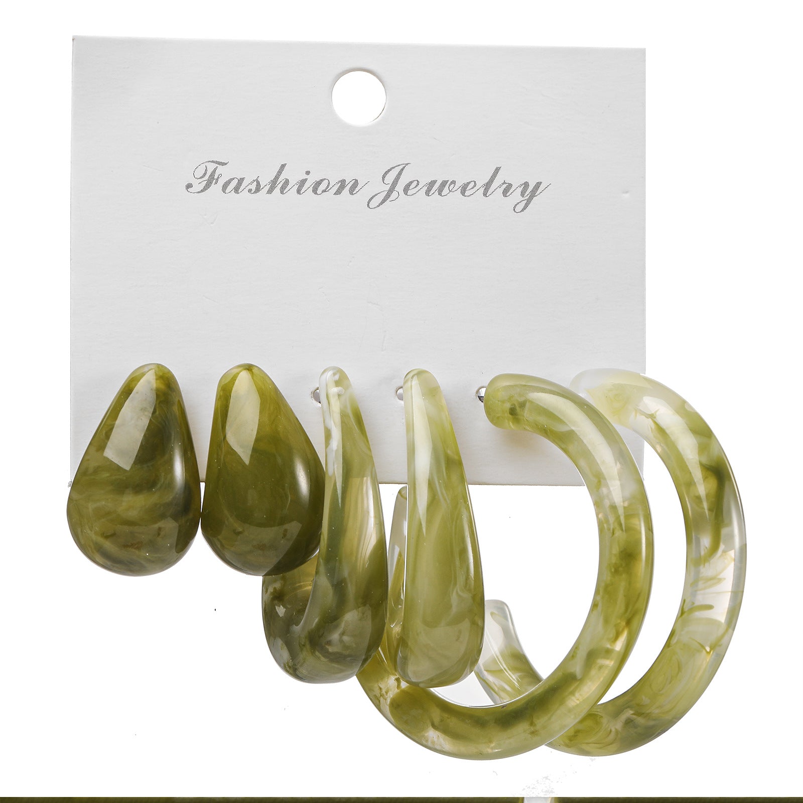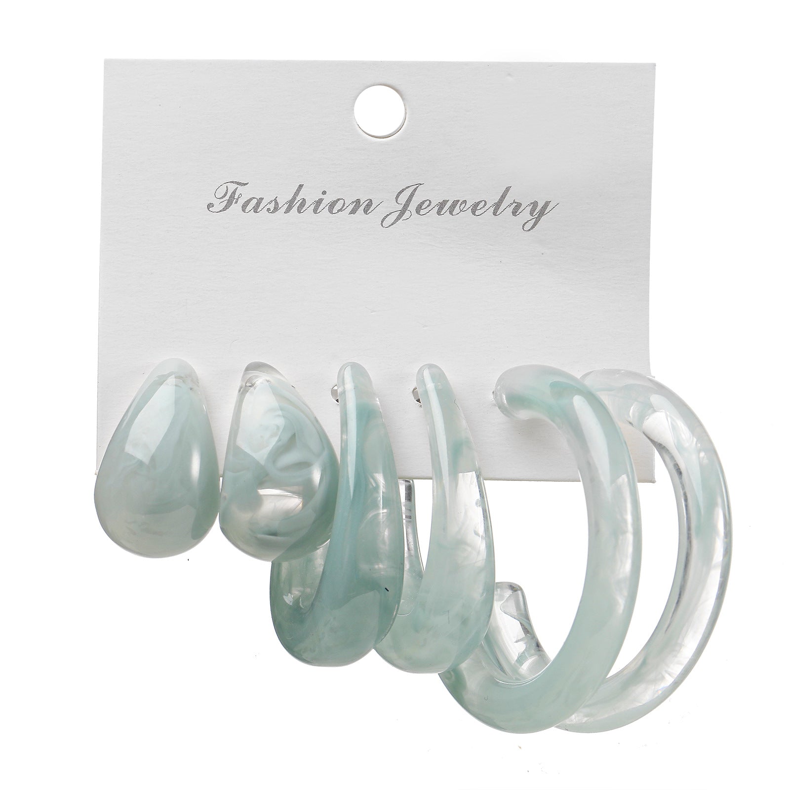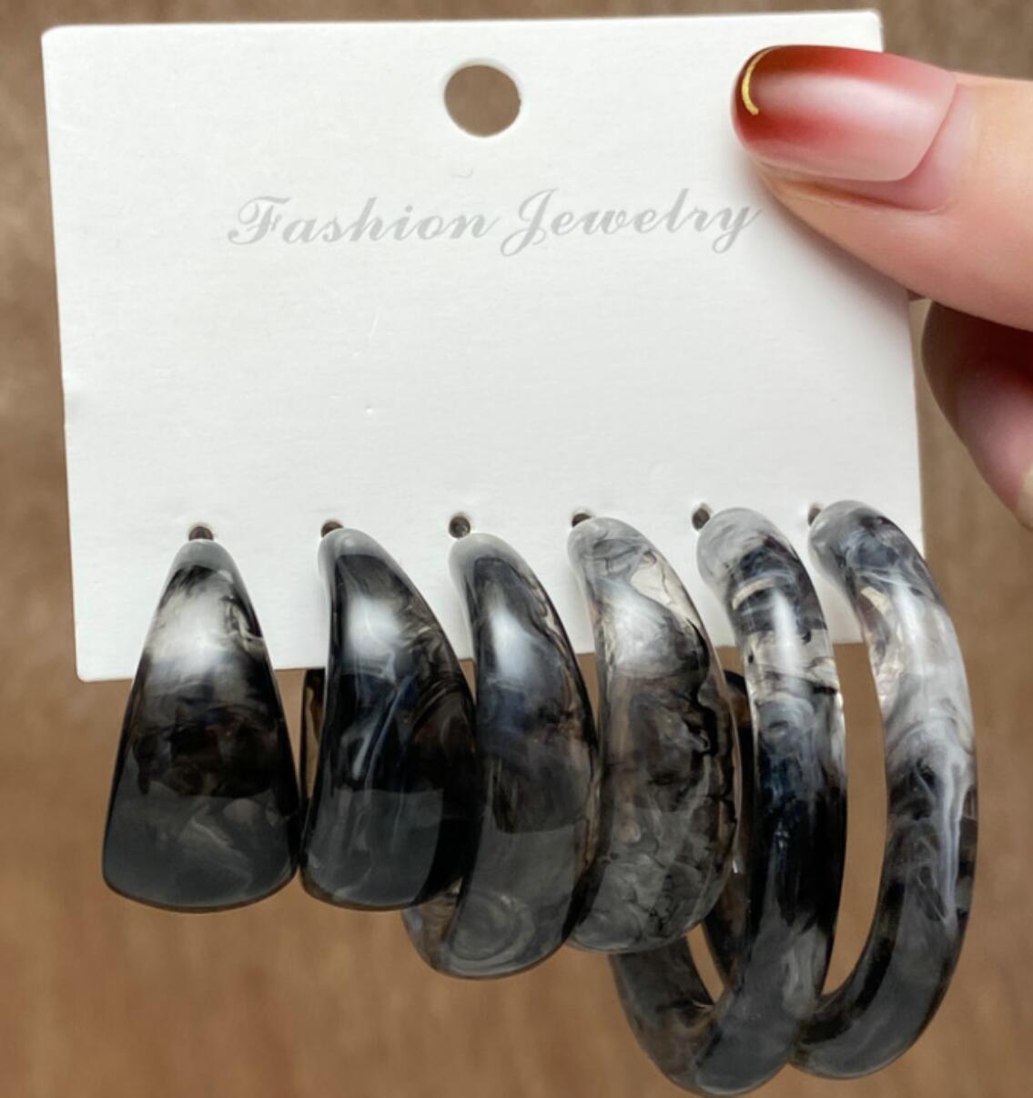 European American Retro C Letter Acetate Earrings Set - 3 Pairs