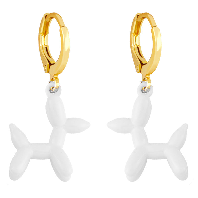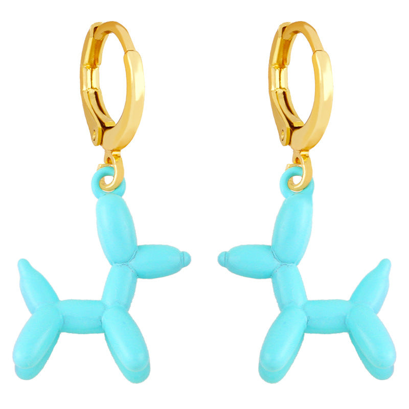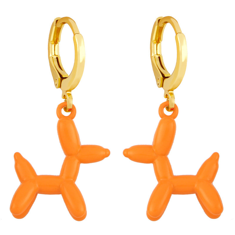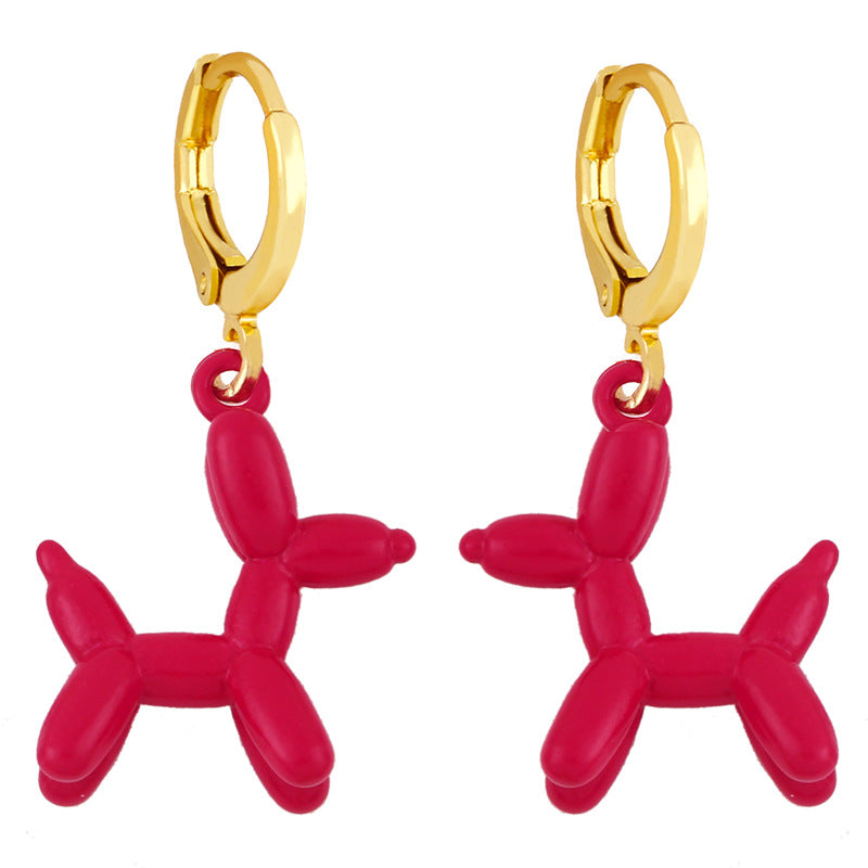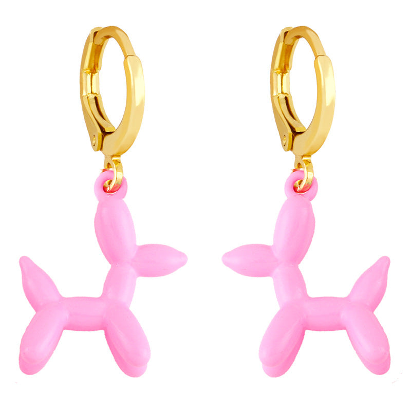 Retro Geometric Colorful Earrings with Pink Balloon Dog Design