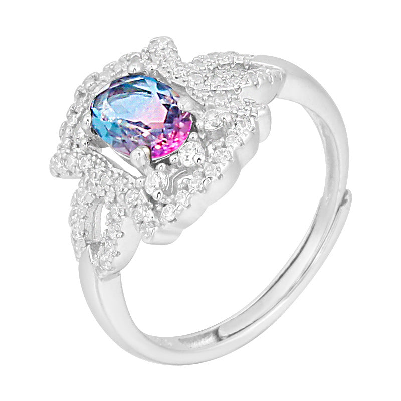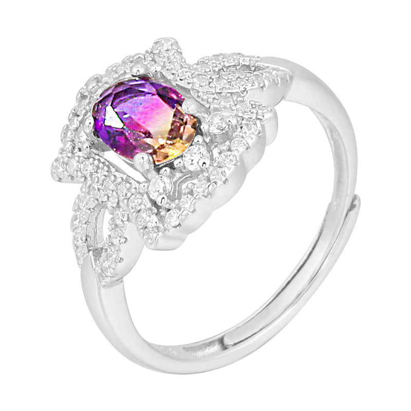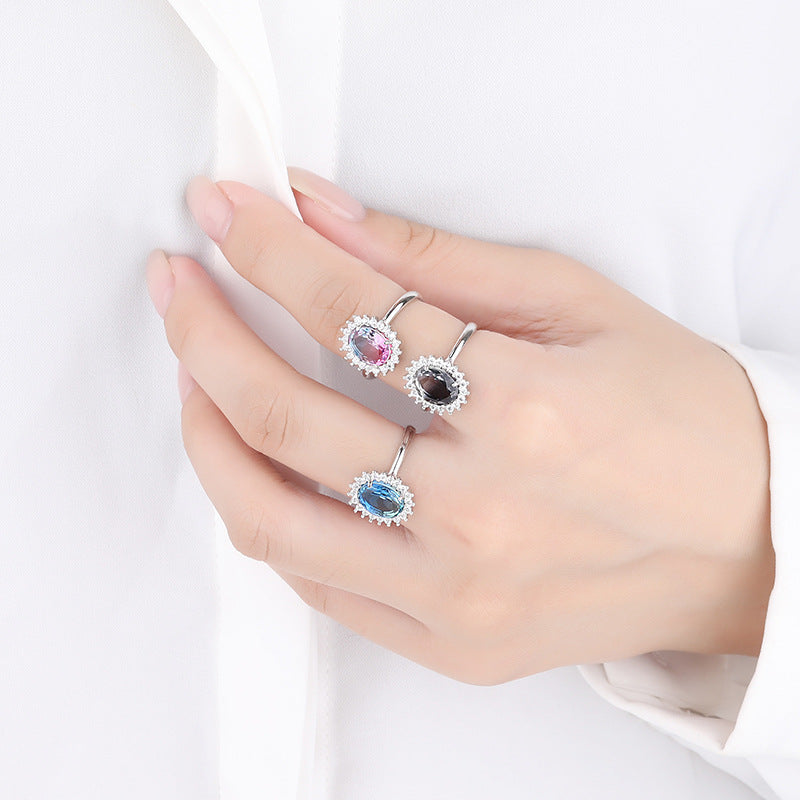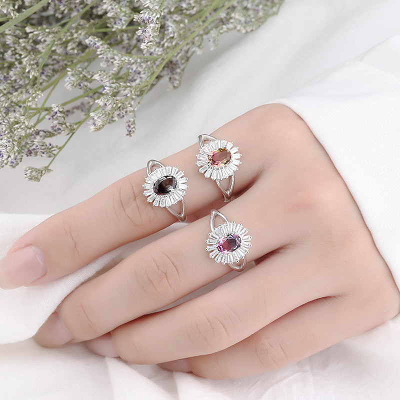 European American S925 Silver Micro-inlaid Tourmaline Ring Jewelry