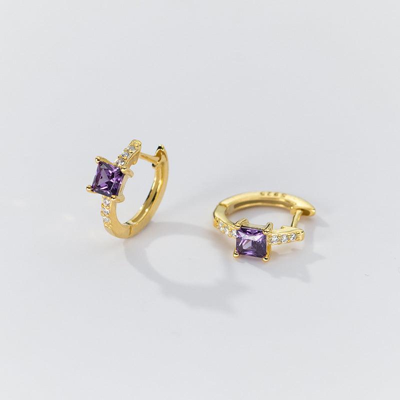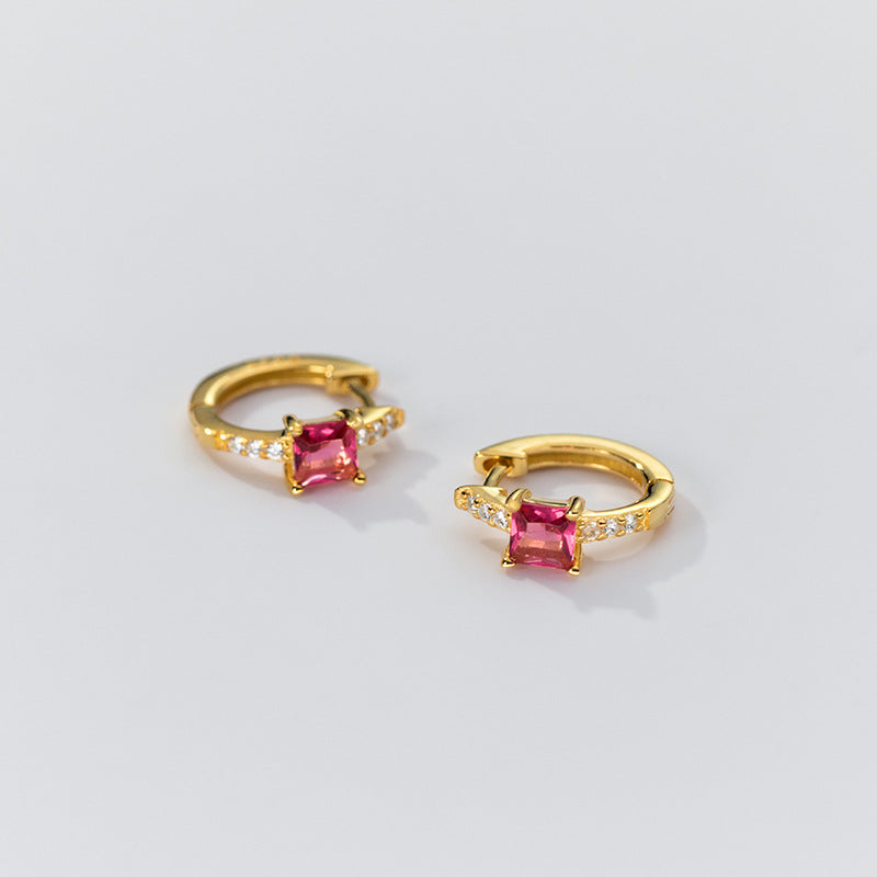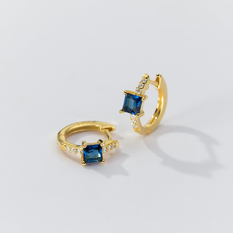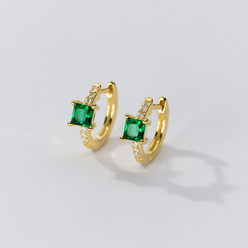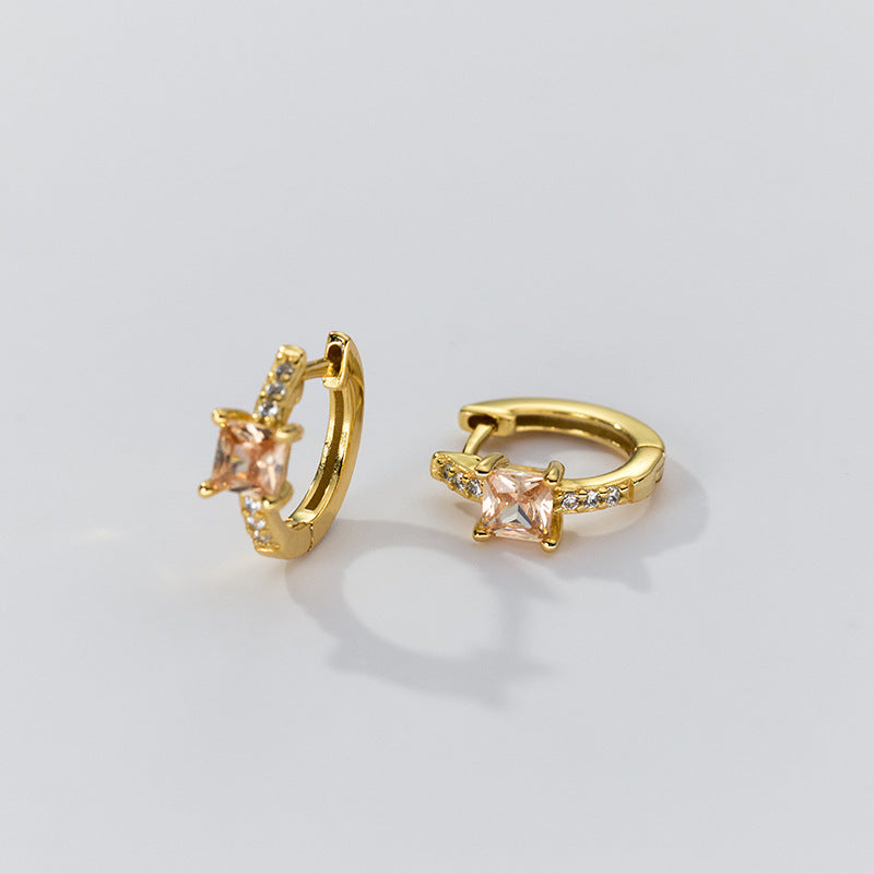 European American Gold-Plated Copper Square Zircon Inlaid Diamond Ear Clip S925 Silver Earrings