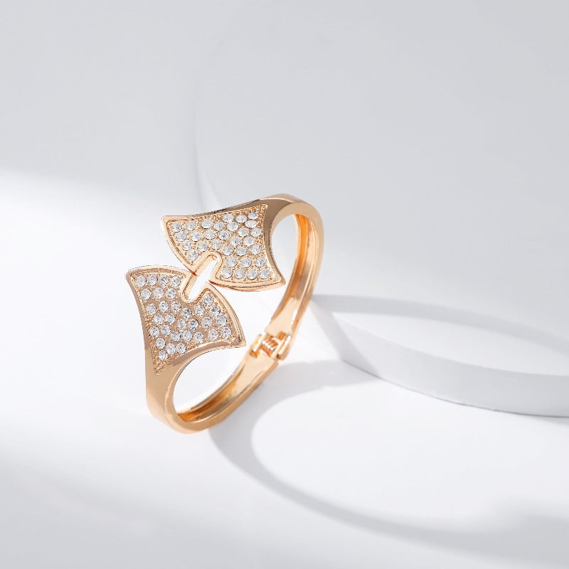 European Ginkgo Leaf Open Cuff Diamond Fan-shaped Bracelet