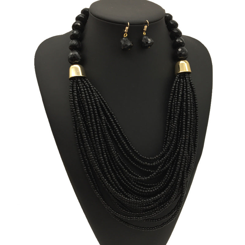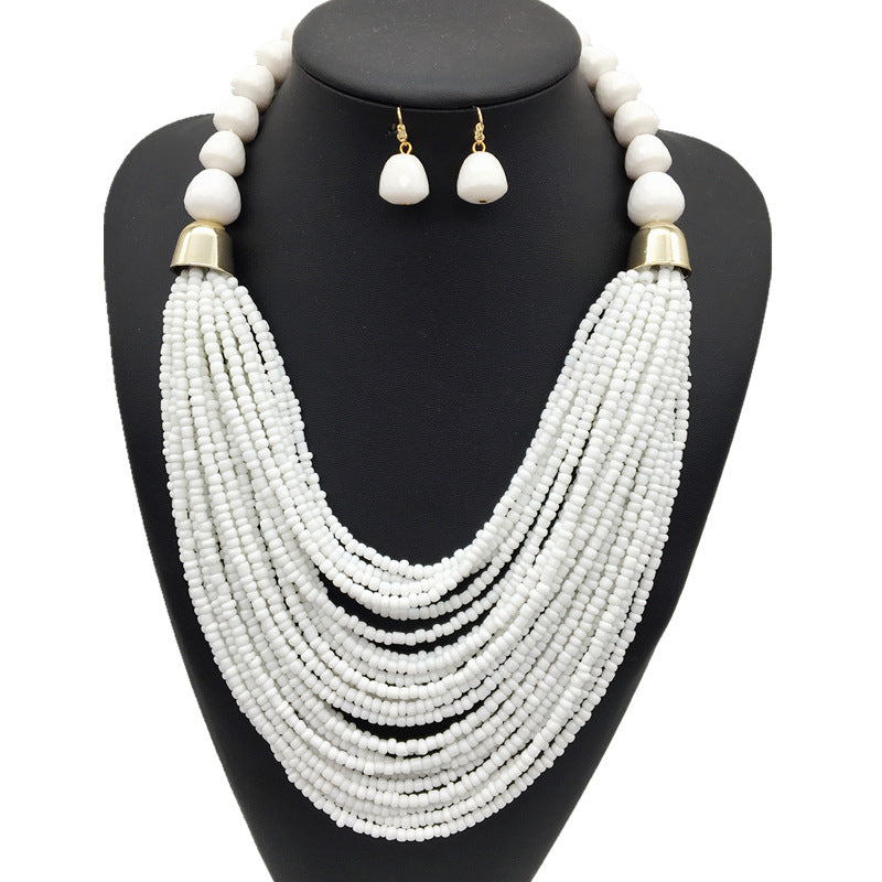 Exaggerated Bohemian Multi-Layer Acrylic Beaded Necklace Jewelry Set