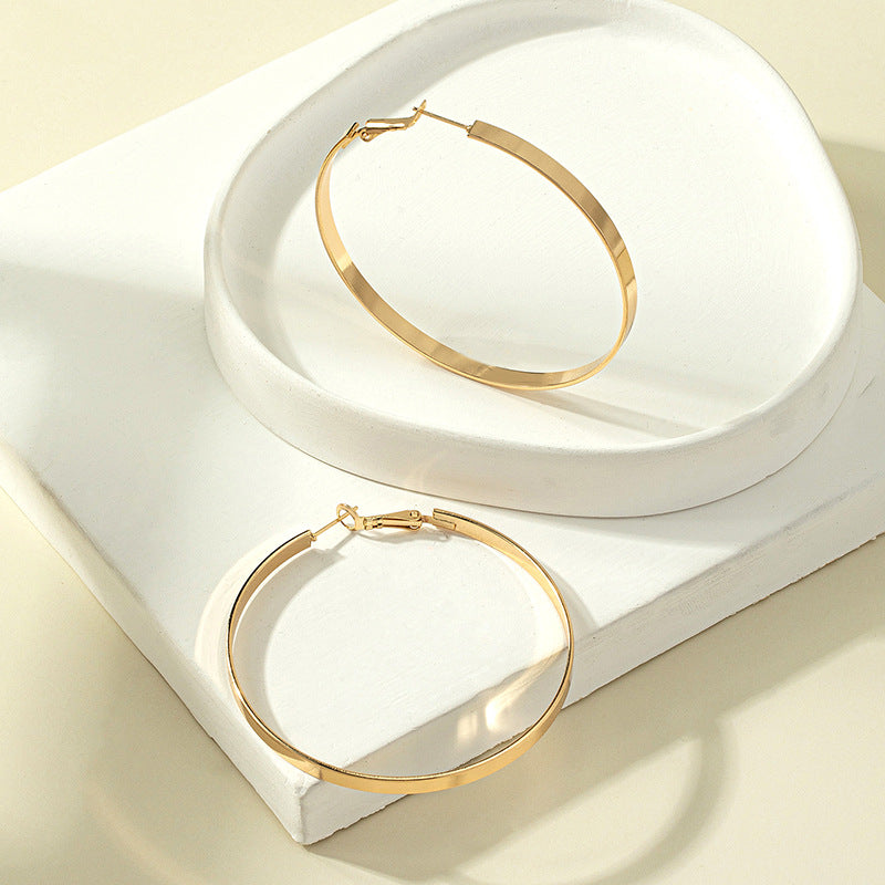 Exaggerated Geometric Alloy Hoop Earrings - Minimalist Statement Metal Ear Jewelry