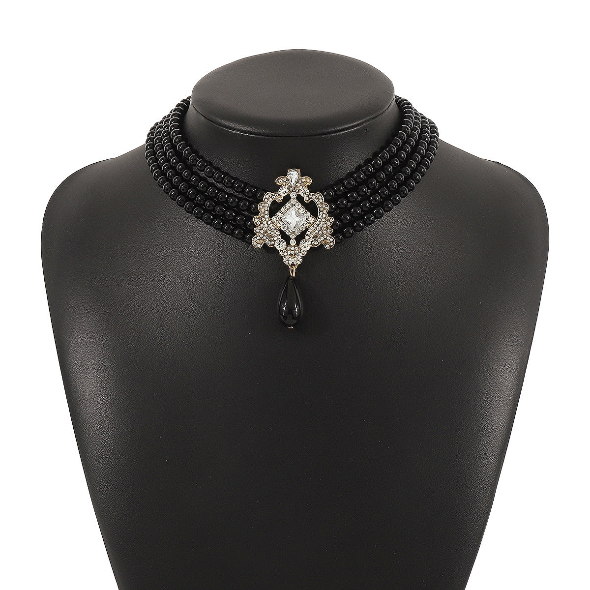 Exaggerated Geometric Pearl Alloy Beaded Rhinestone Multi-Layer Women's Choker Necklace