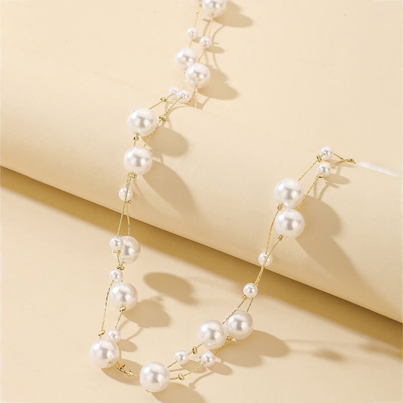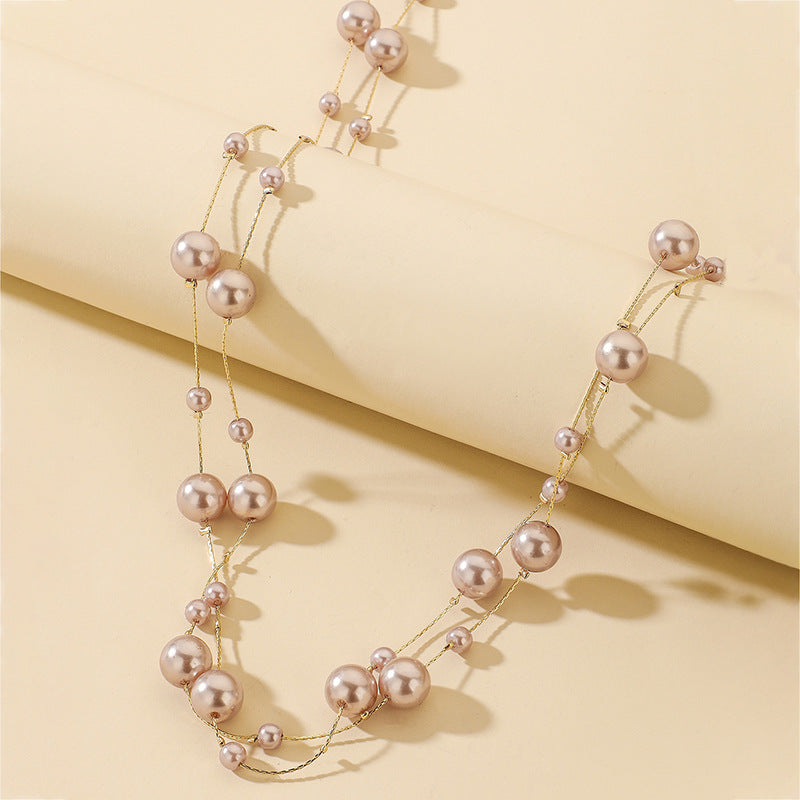 Exaggerated Long Pearl Multi-layer Vintage Alloy Necklace for Women