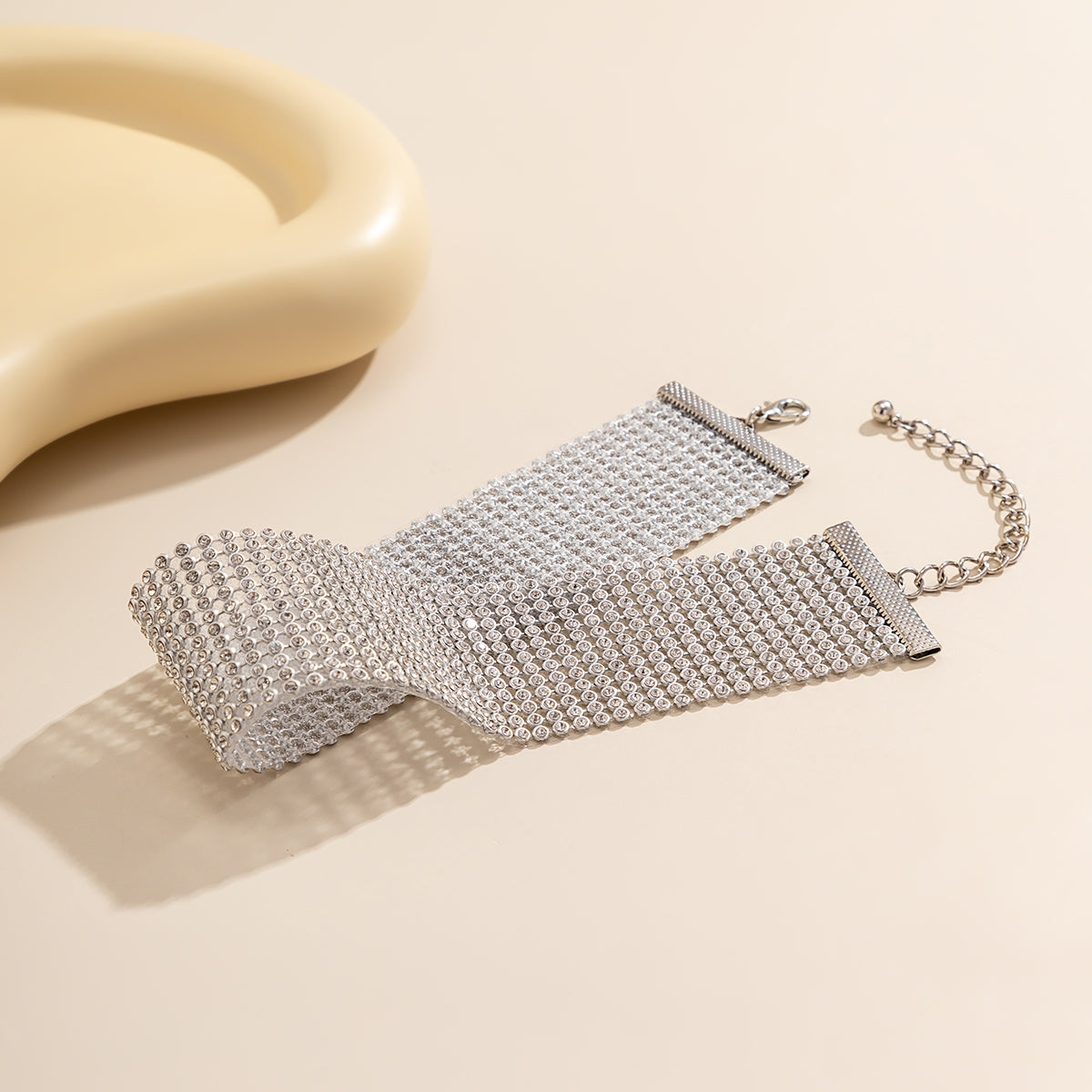 Exaggerated Rhinestone Choker Necklace with Wide Band Design