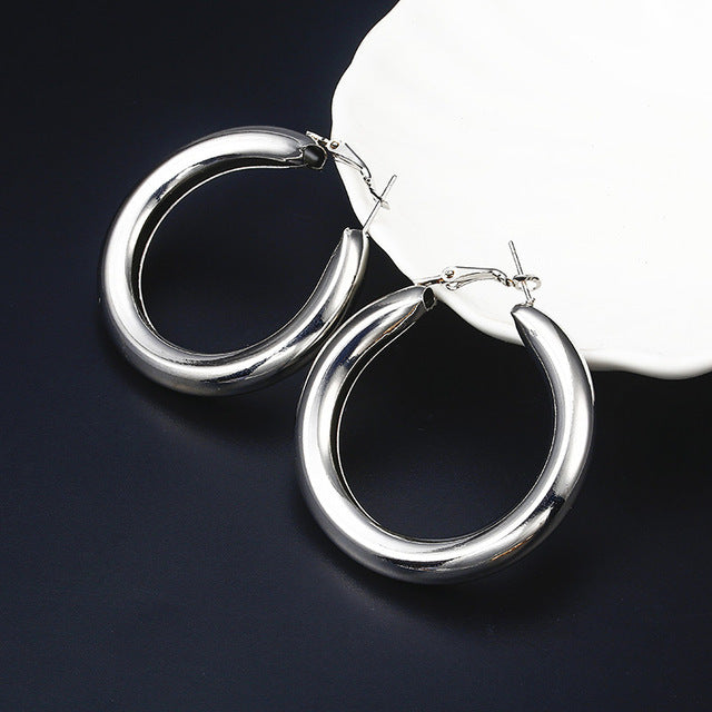 Fashion Geometric Metal Hoop Earrings - Creative Semi-Circle Design