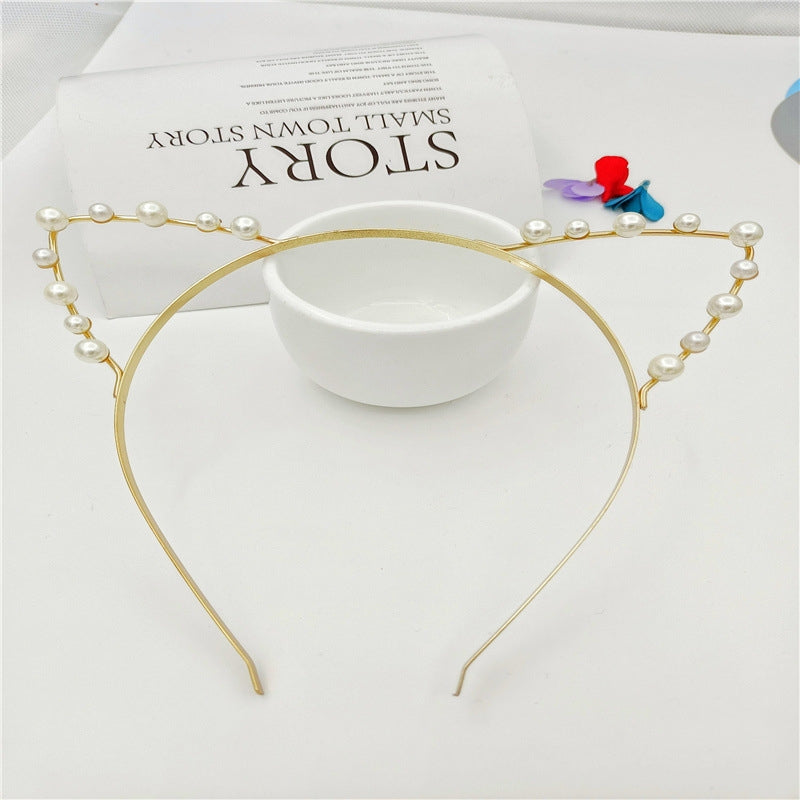 Fashion Rhinestone Cat Ear Pearl Hairband
