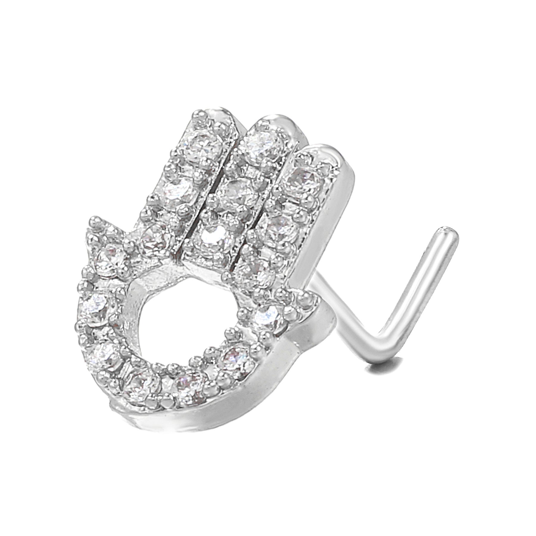 Fashion Animal Palm Brass Inlay Zircon Nose Studs with 20g Stainless Steel L Bar Piercing Jewelry