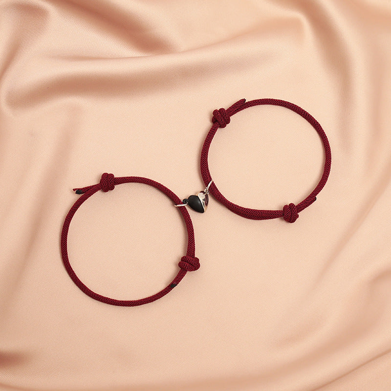 Fashion Black White Heart Magnet Rope Bracelet Pair Set Jewelry