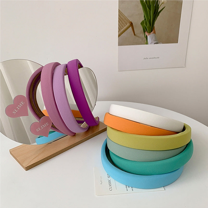 Fashion Candy Color Solid Sponge Wide Headband for Women