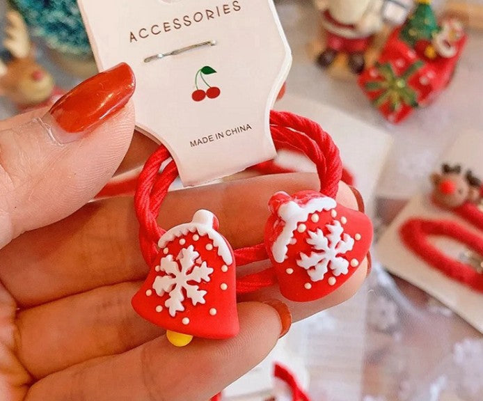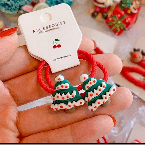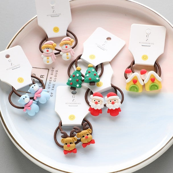 Fashion Cartoon Character Acrylic Hair Tie Set for Kids - Santa Claus Design