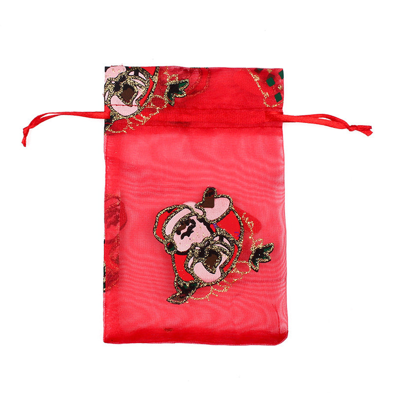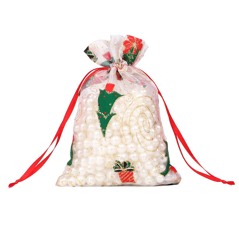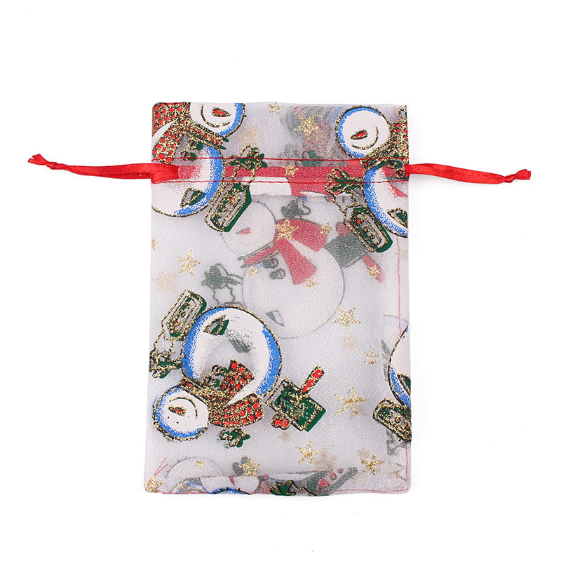 Fashion Christmas Tree Santa Claus Snowman Organza Drawstring Gift Bags
