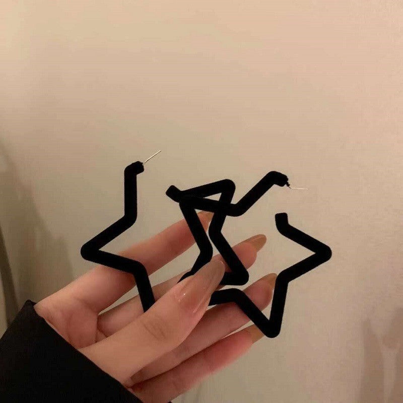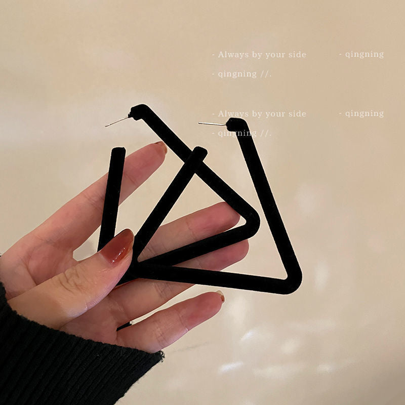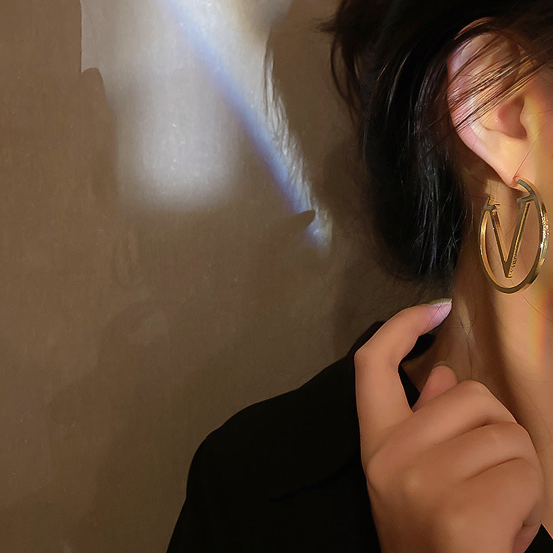 Circle Letter V Earrings - Black and White Statement Hoops for Women