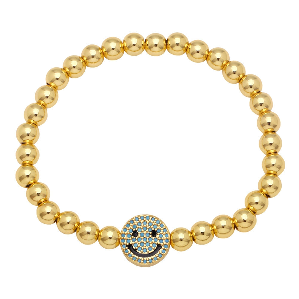 18K Gold Plated Colorful Zircon Smiling Face Bead Bracelet