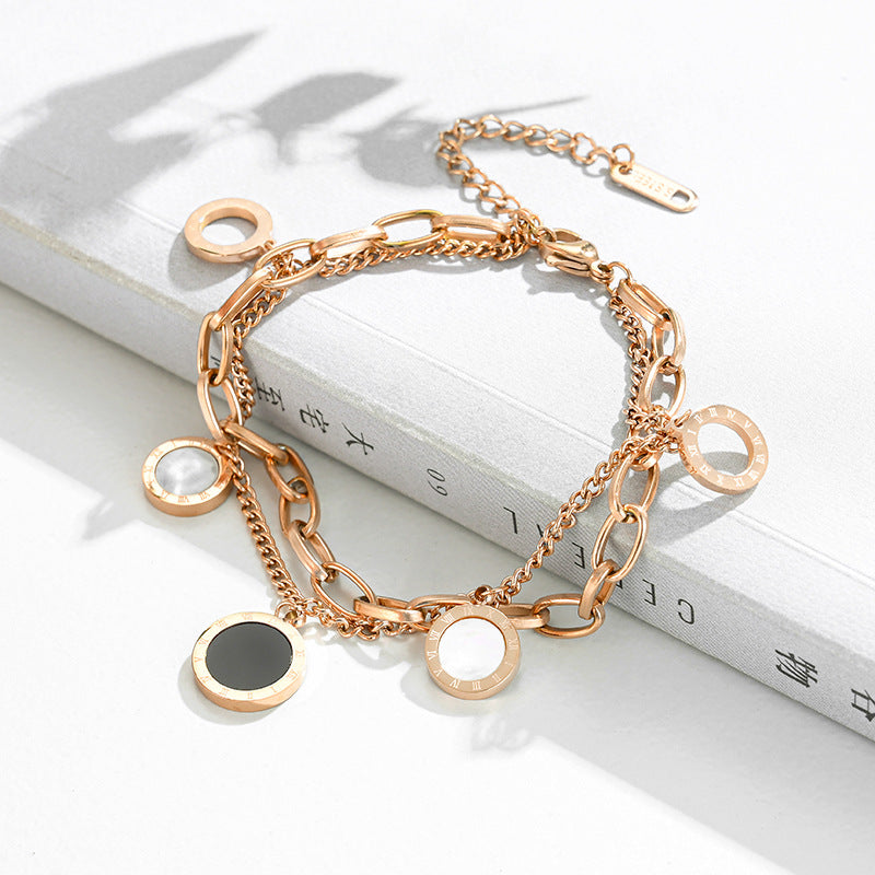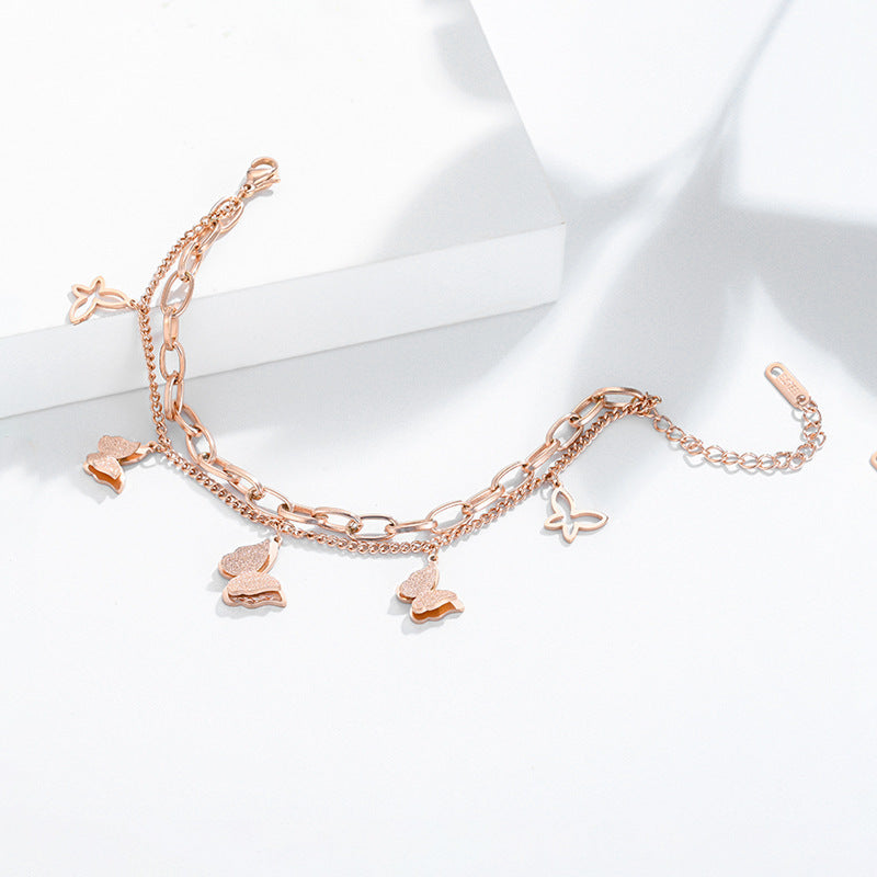 Fashion Double-Layer Butterfly Roman Numeral Titanium Steel Bracelet
