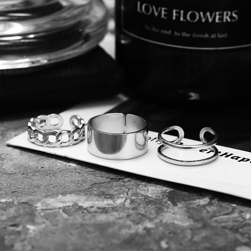 Fashion Geometric Chain Twist Ring Set - Three Pieces