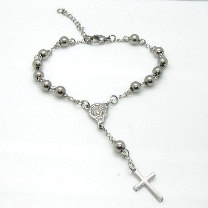 Fashion Cross Stainless Steel and Titanium Beaded Bracelet Set