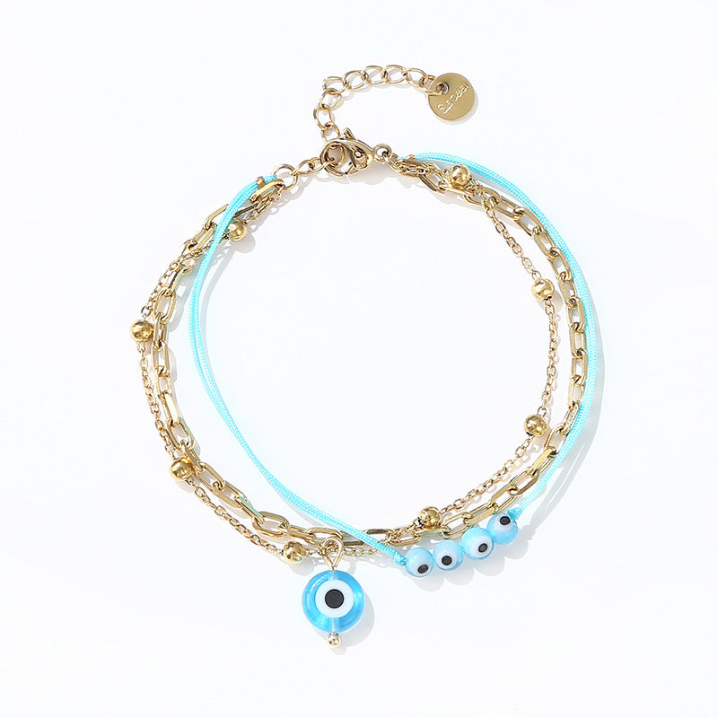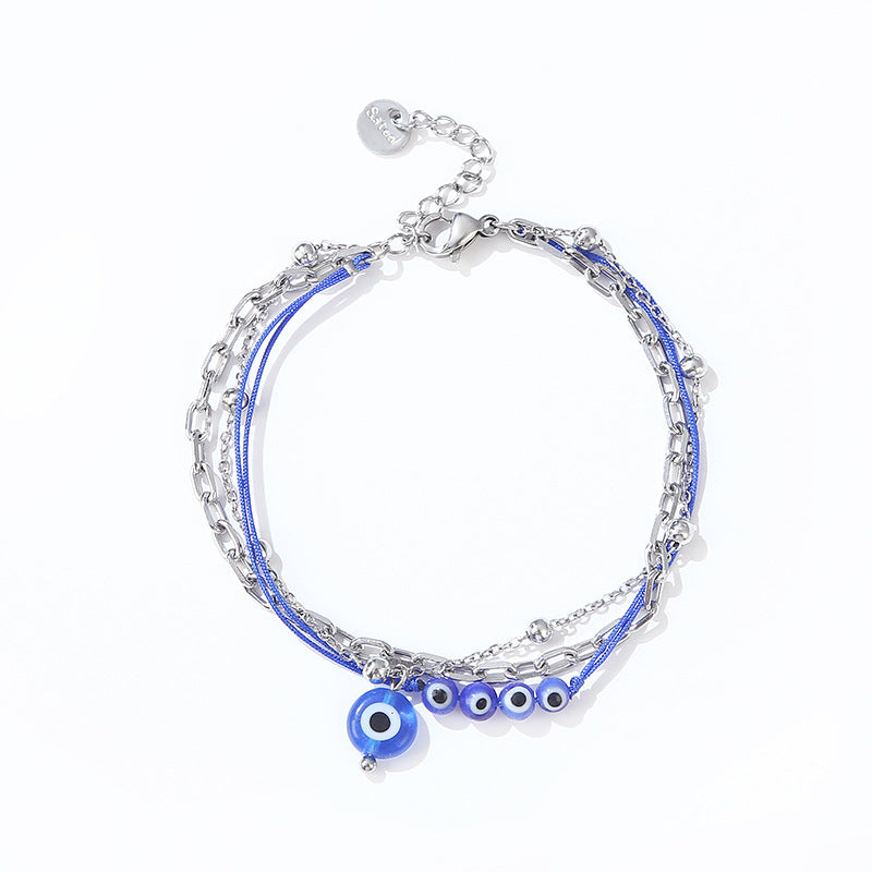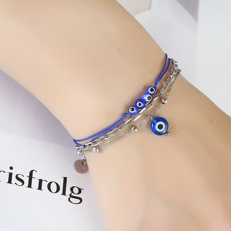 Fashion Devil's Eye Stainless Steel Triple Layer Bracelet - Cobalt Blue