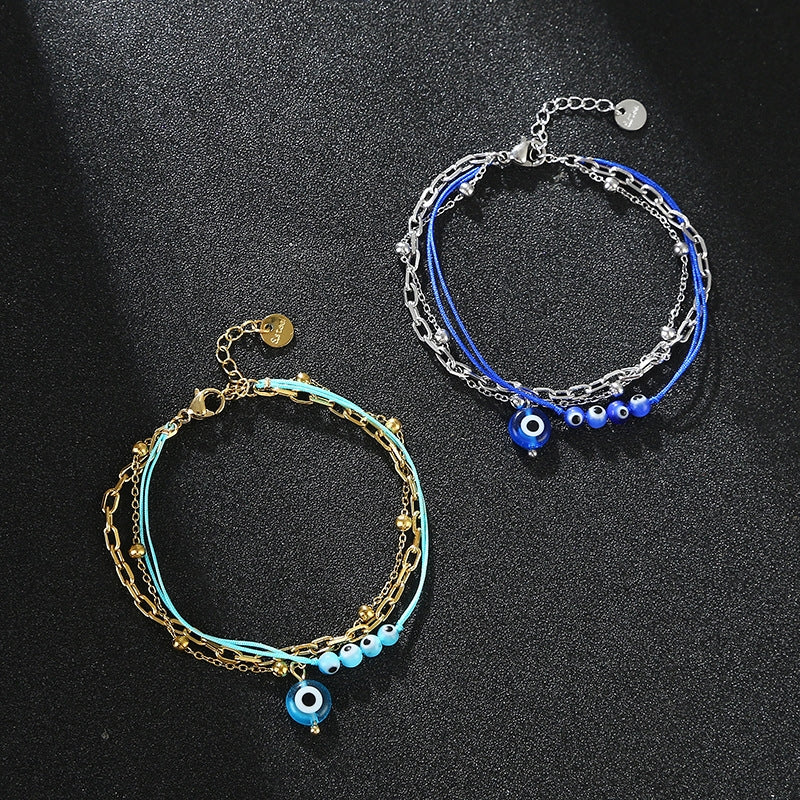 Fashion Devil's Eye Stainless Steel Triple Layer Bracelet - Cobalt Blue