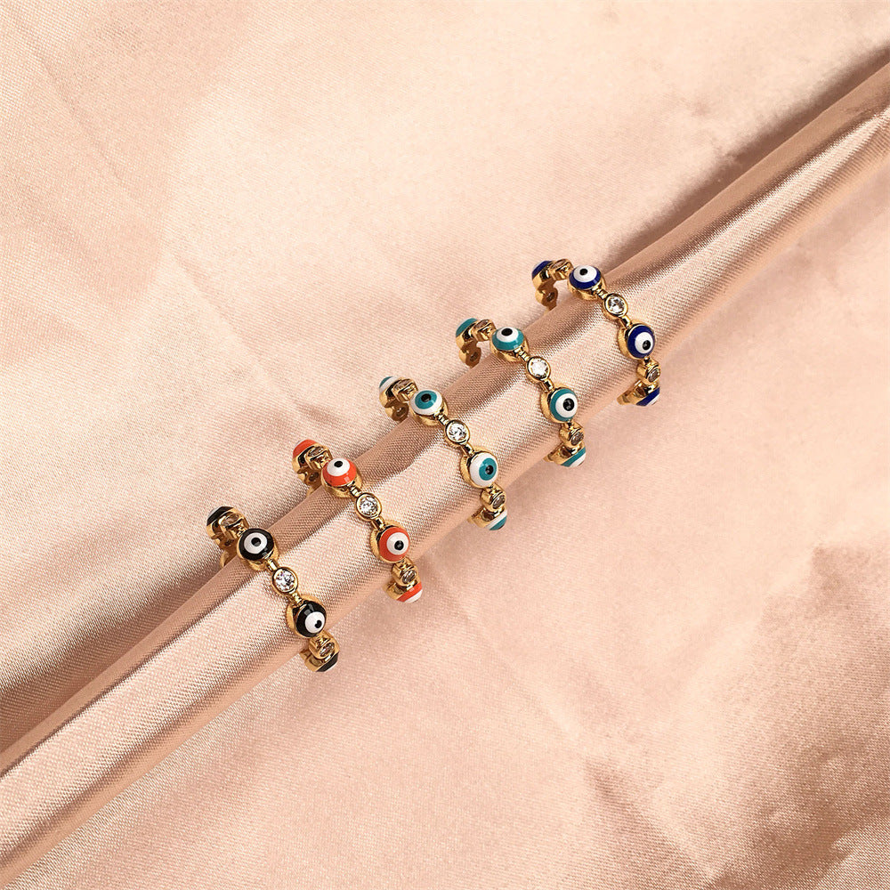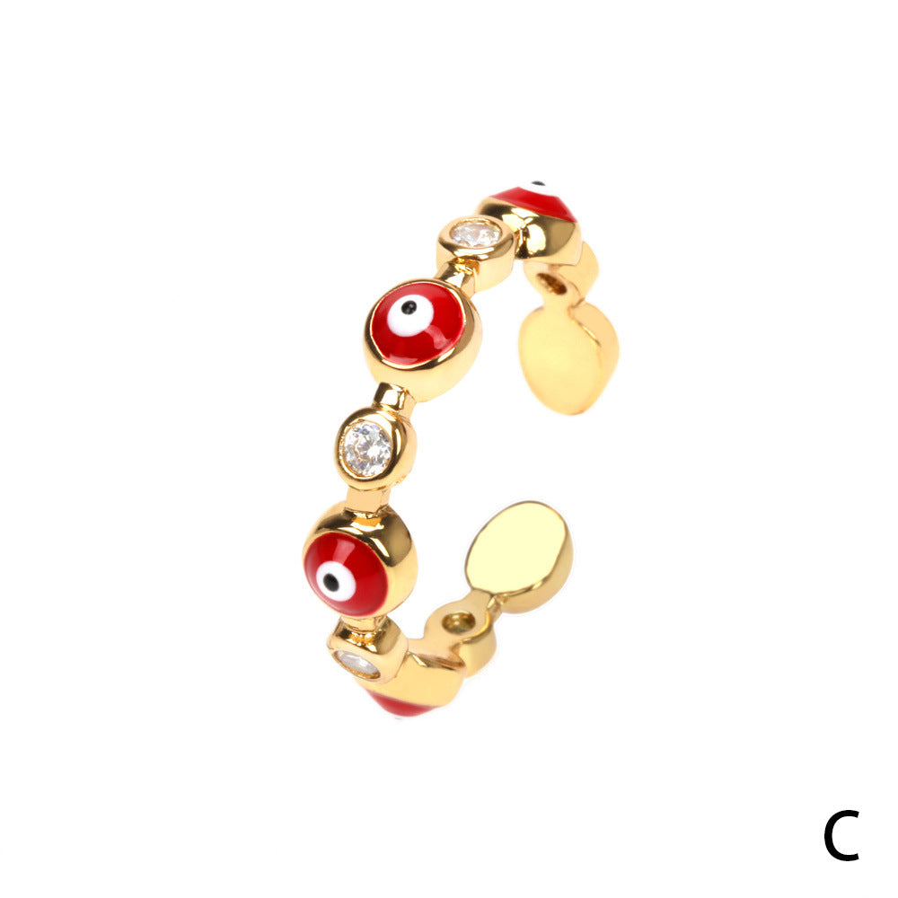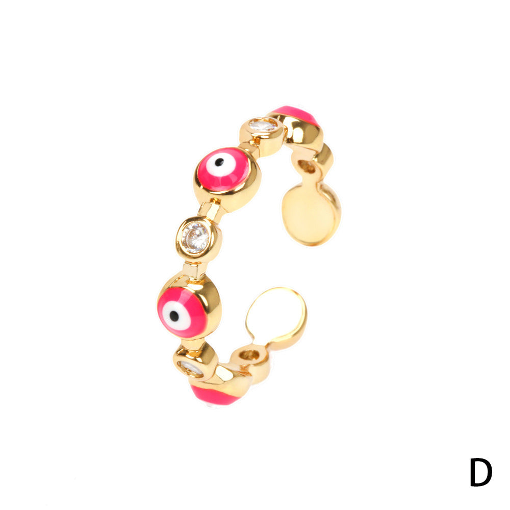 Fashion Zircon Evil Eye Colorful Enamel Open Ring