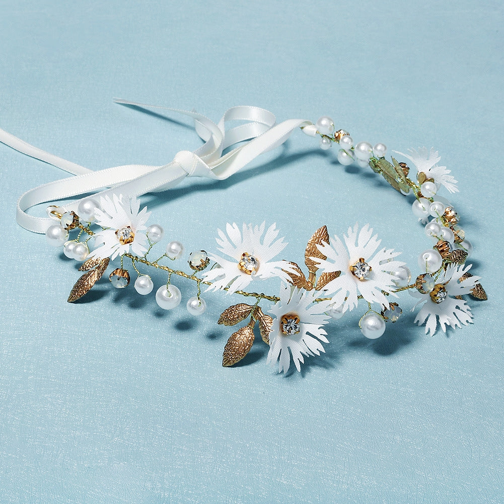 Floral Fabric Pearl Headband for Weddings and Bridesmaids