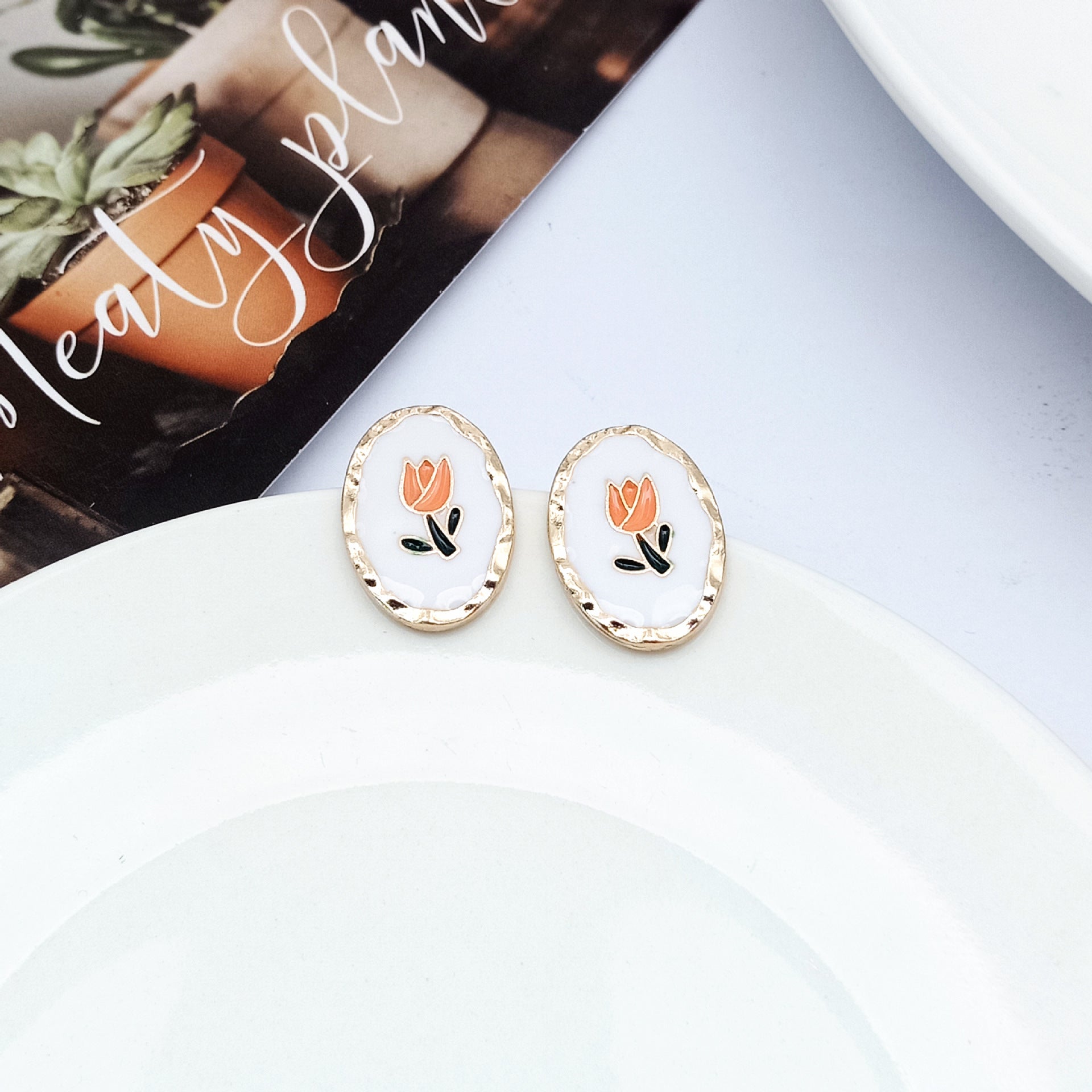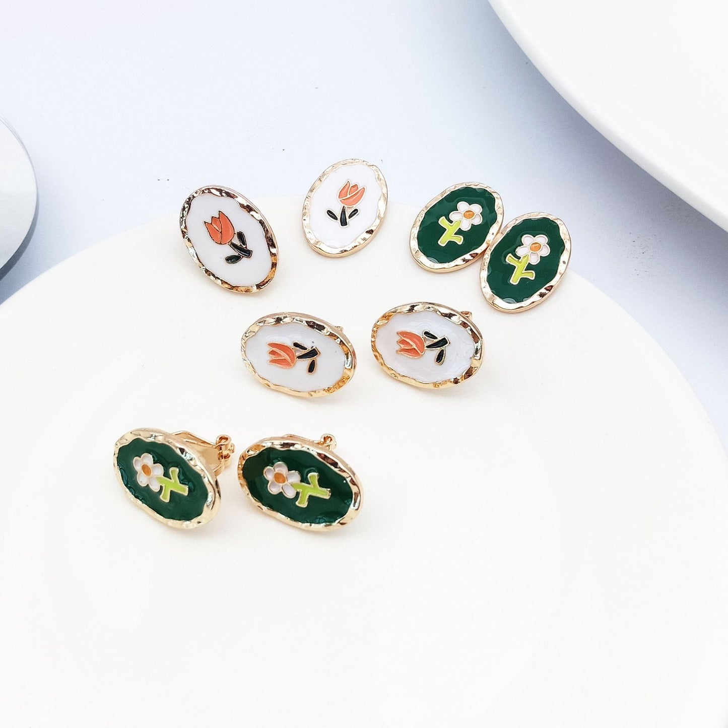 Fashion Flower Enamel Ear Clips with S925 Silver Studs