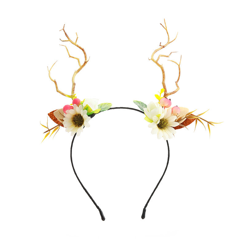 Floral Antler Headband - Christmas Reindeer Hair Accessory