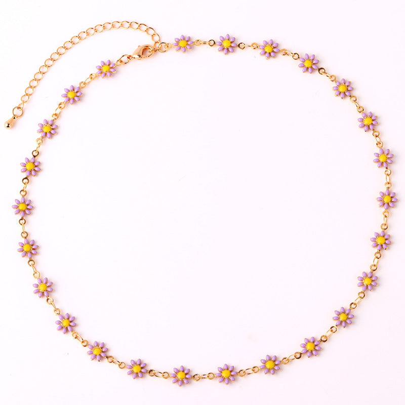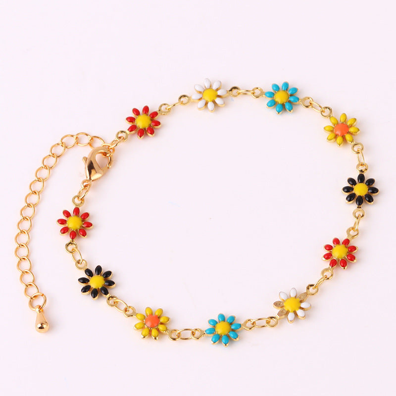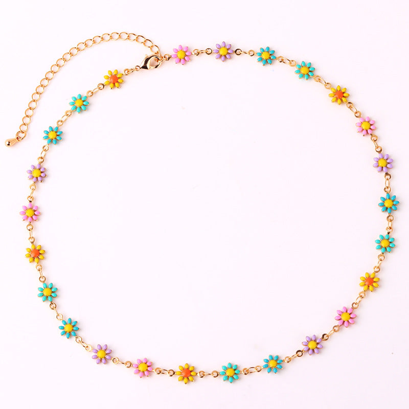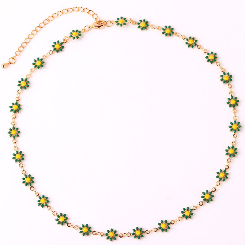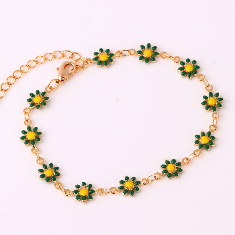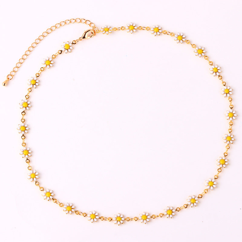 Fashion Daisy Enamel Flower Necklace and Bracelet Set - 18k Gold Plated