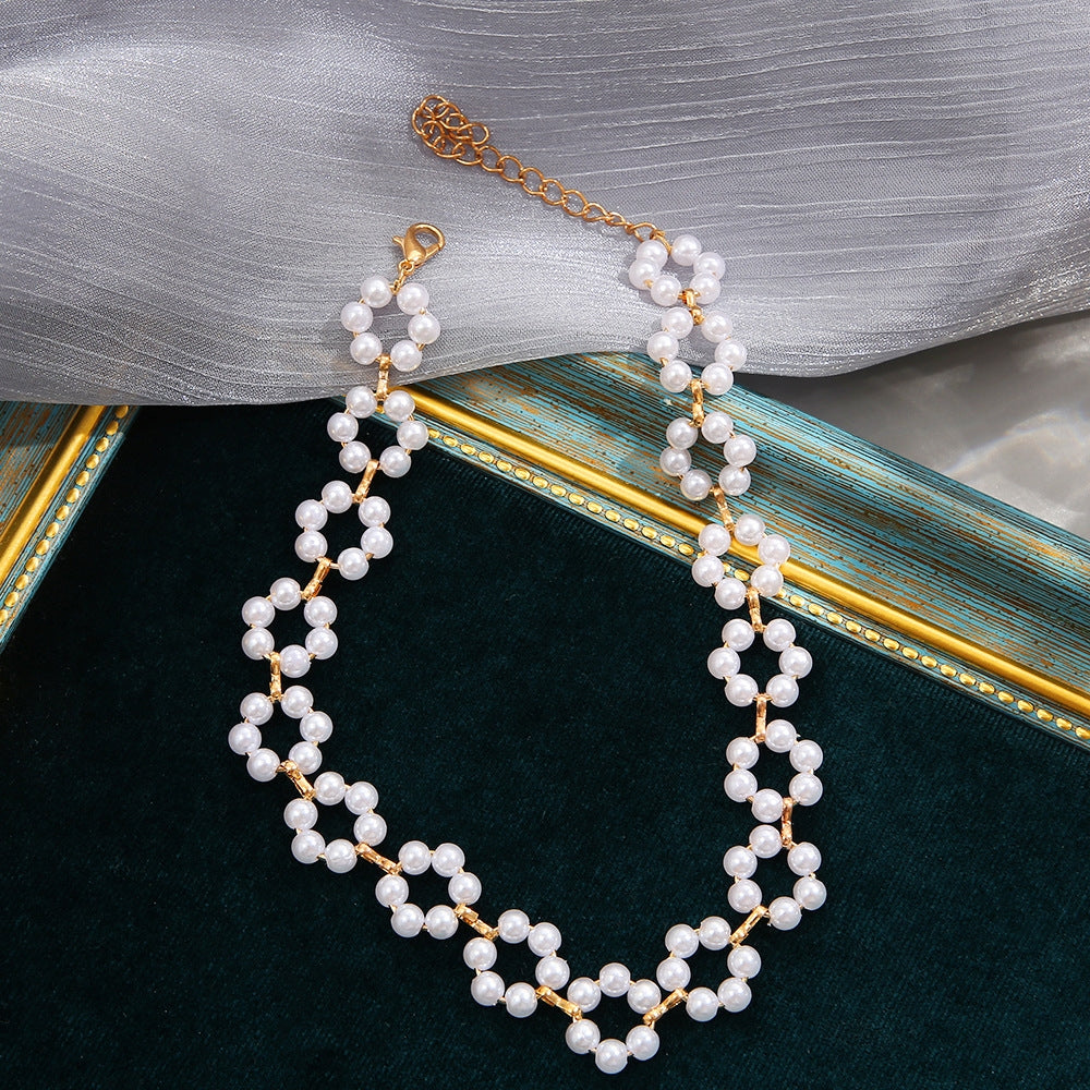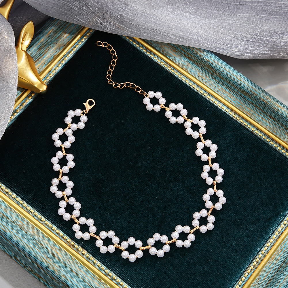 Fashion Geometric Alloy Plated Pearl Choker Necklace