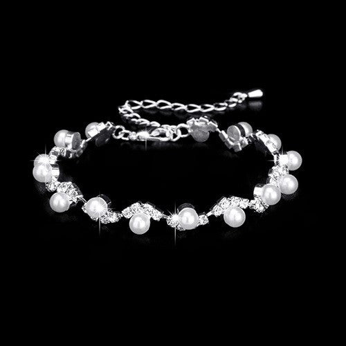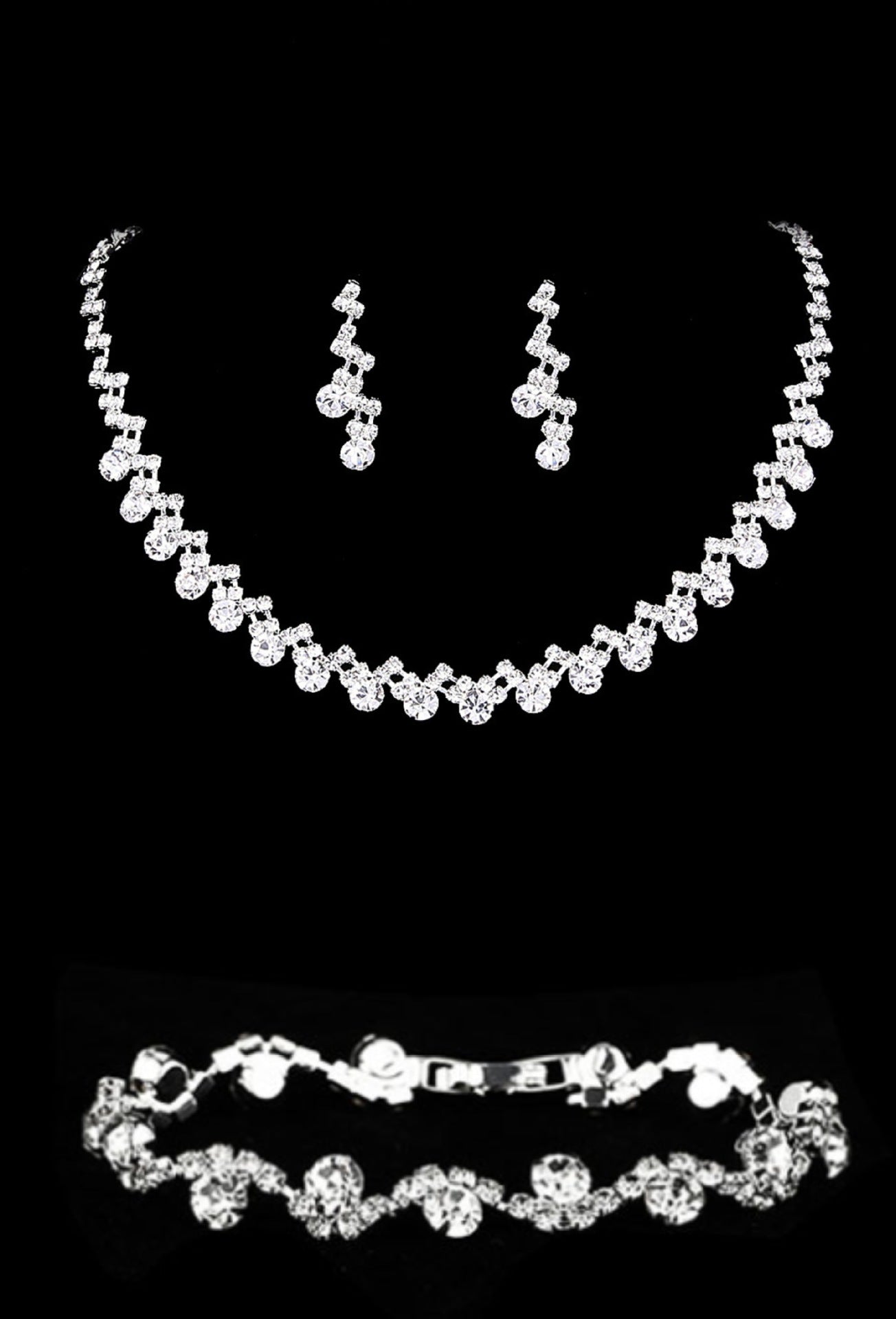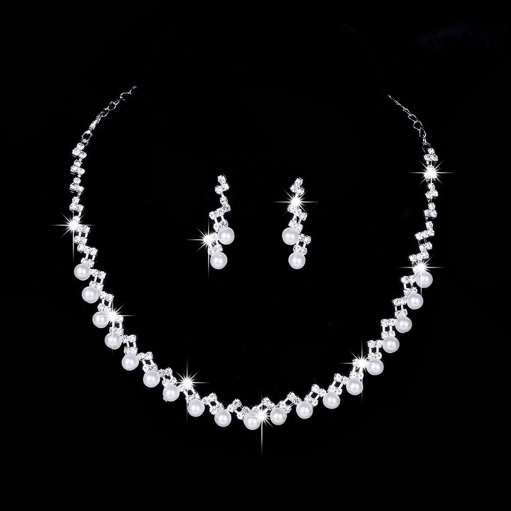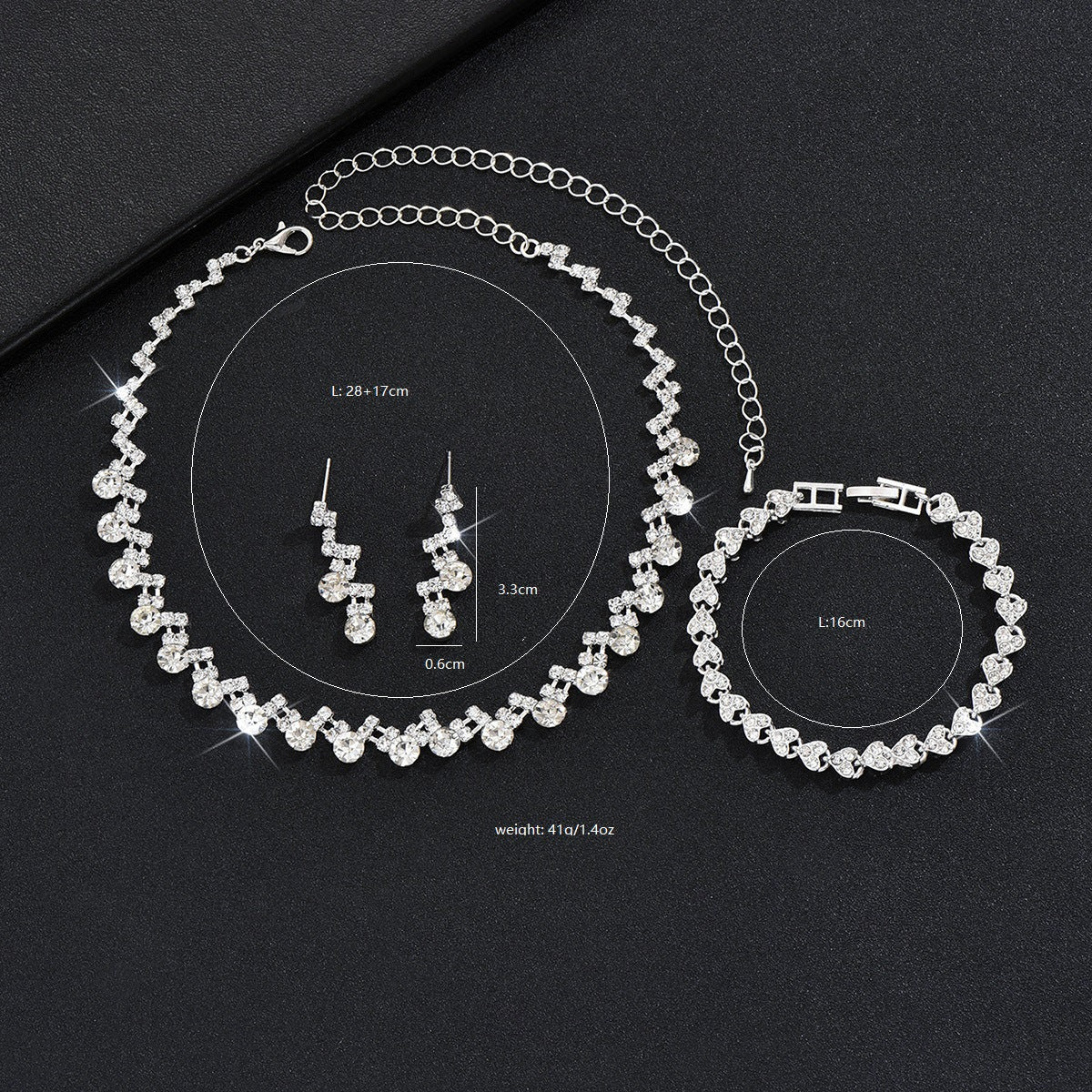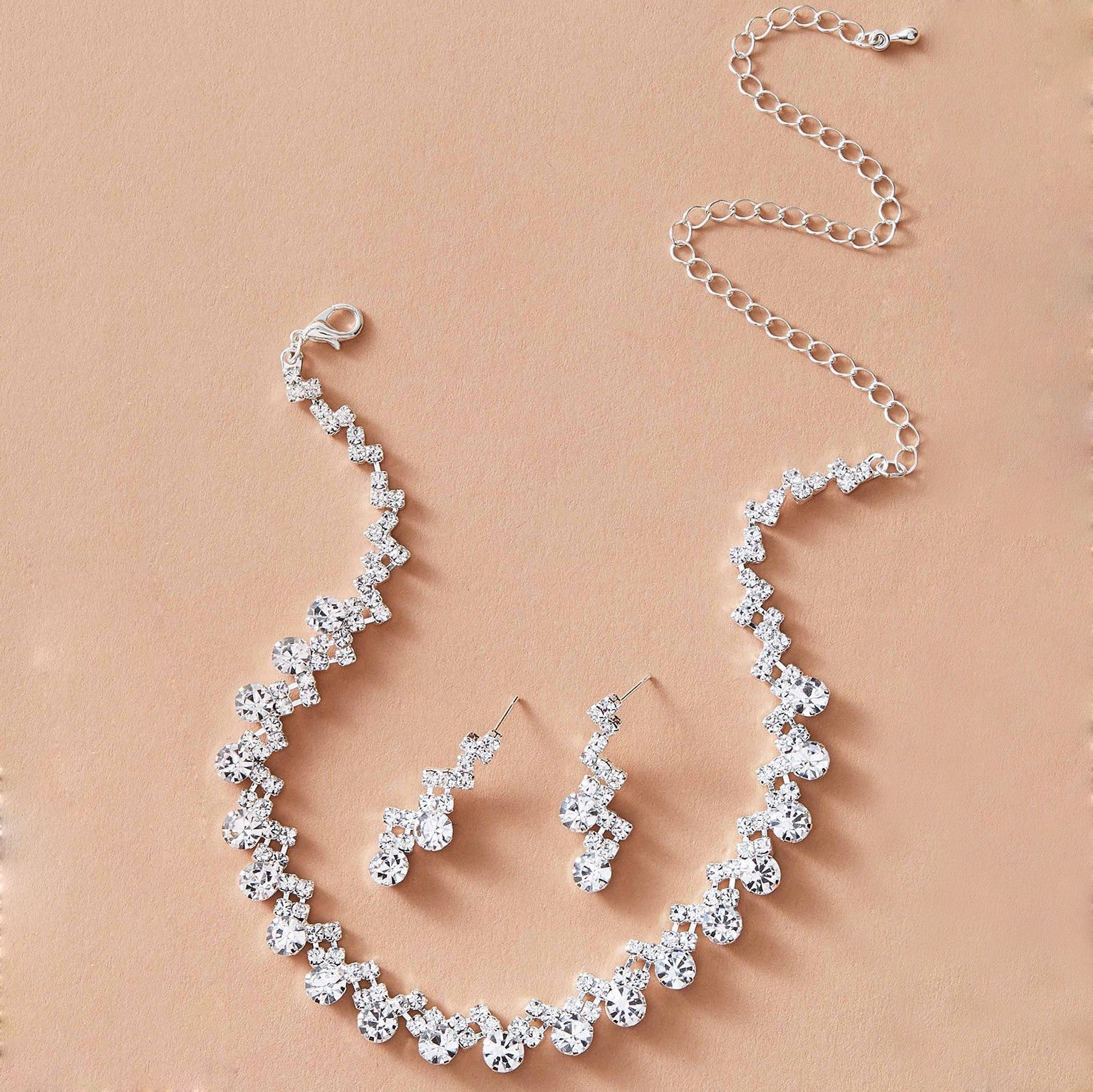 Fashion Geometric Copper Inlay Pearl Zircon Jewelry Set - Silver Bridal Accessories with Earrings and Necklace