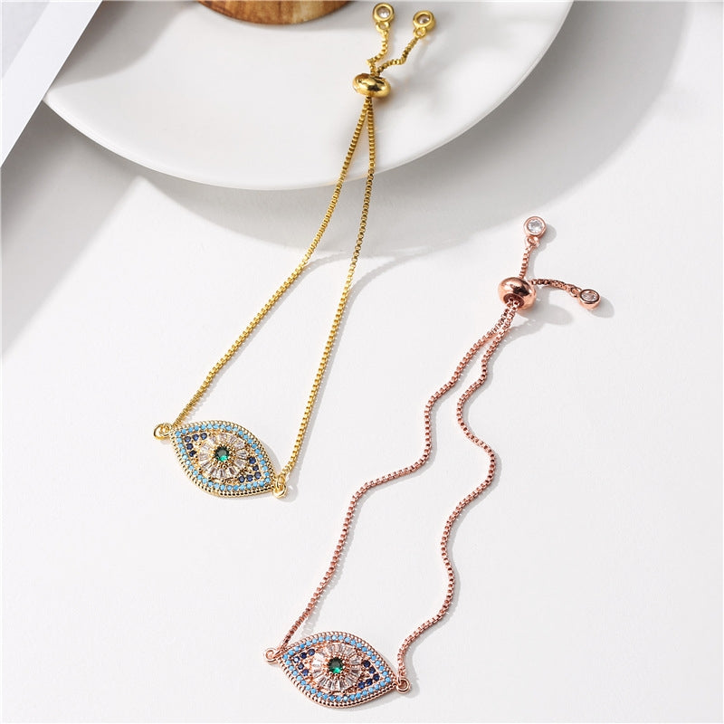 Fashion Geometric Adjustable Copper Zircon Eye Charm Bracelet
