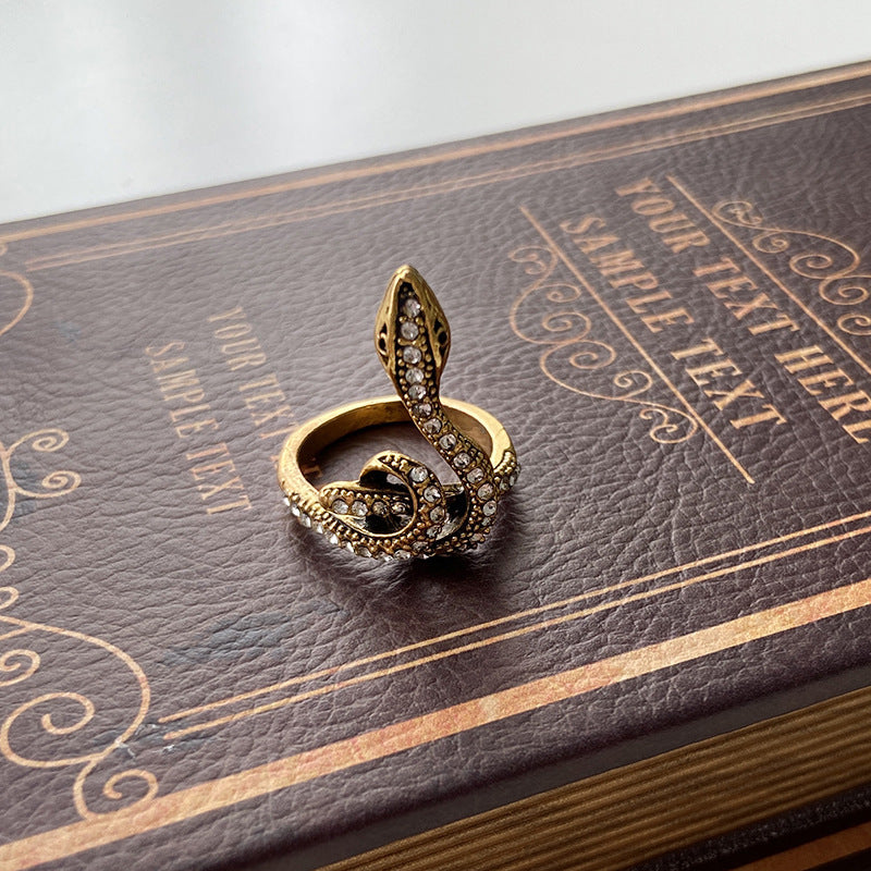 Geometric Metal Plated Earrings and Vintage Carved Moon & Snake Ring Set