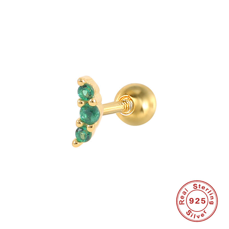 Geometric Moon S925 Sterling Silver Zircon Stud Earrings