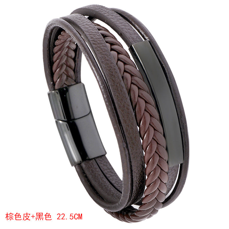 Geometric Unisex Leather and Stainless Steel Bracelet