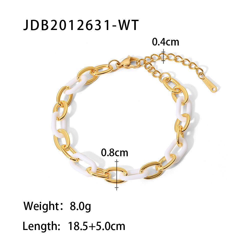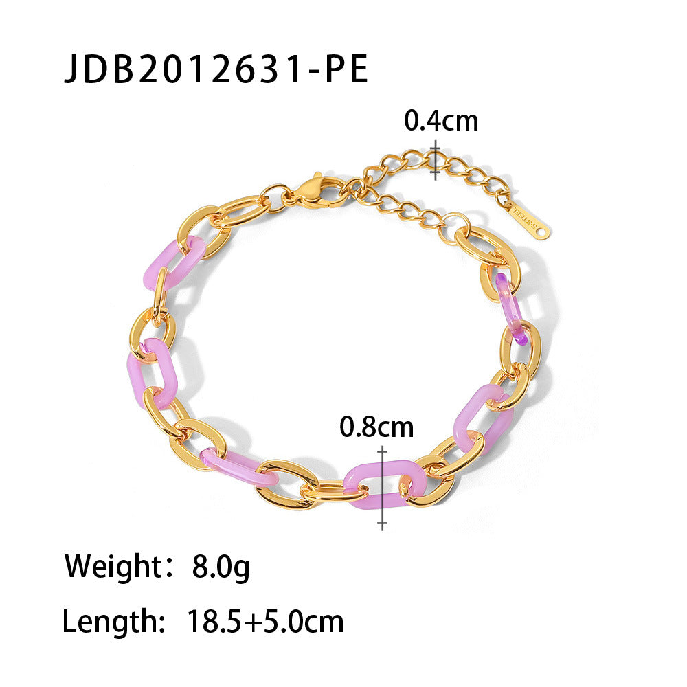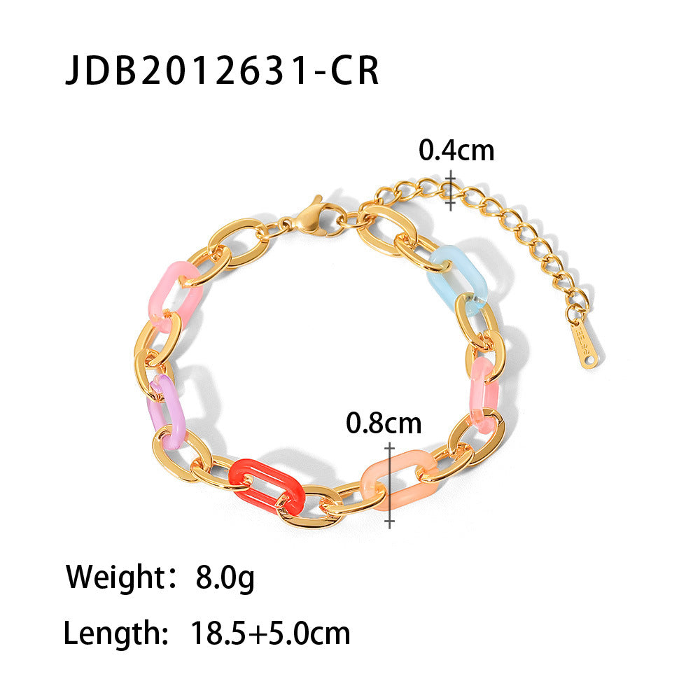 Geometric Colorful Resin 18k Gold Plated Stainless Steel Cross Chain Bracelet for Women