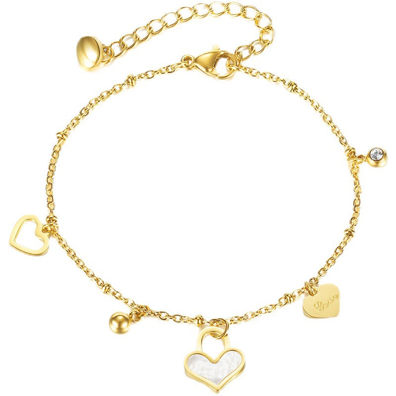 Geometric Stainless Steel Heart Charm Bracelet