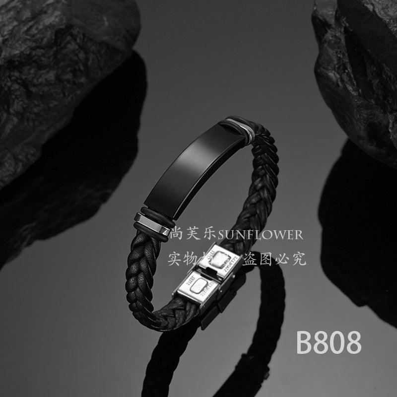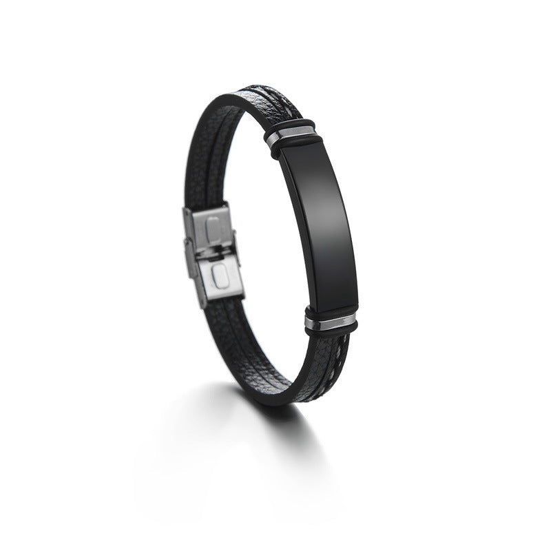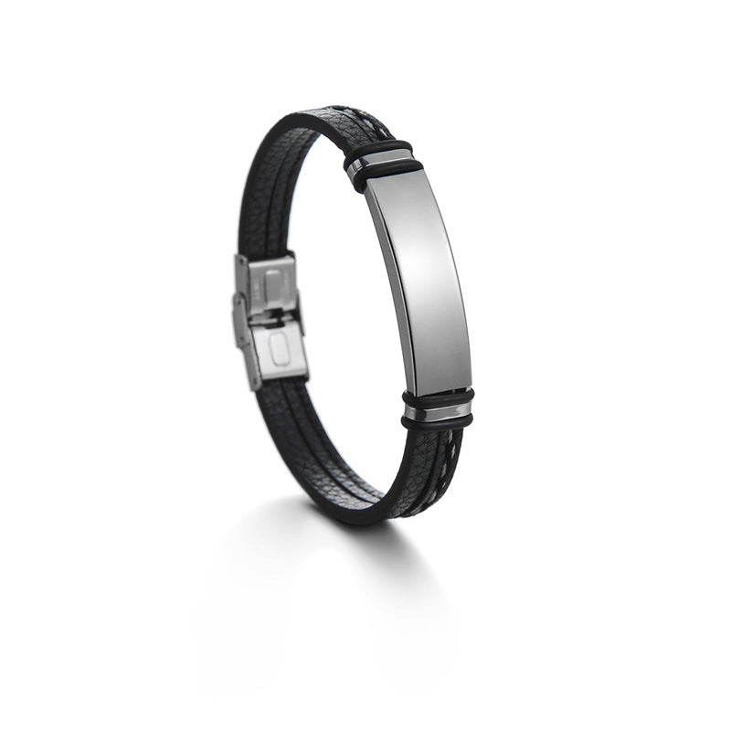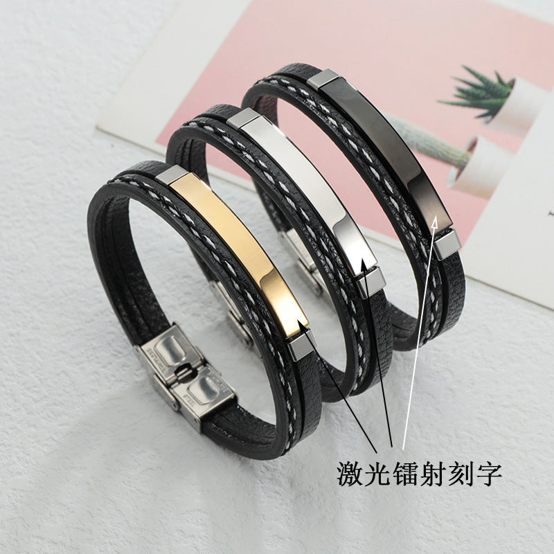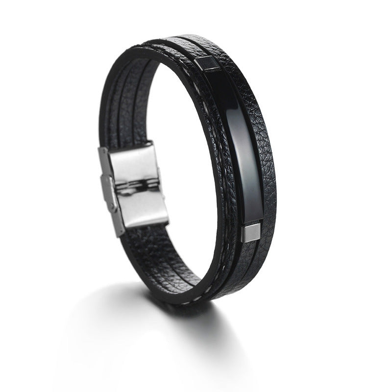 Geometric Stainless Steel Leather Braided Unisex Bracelet
