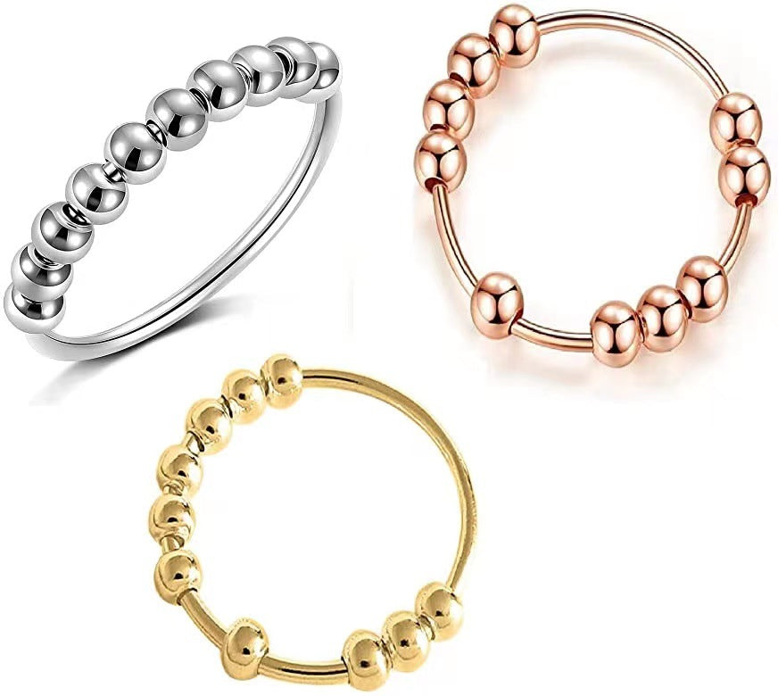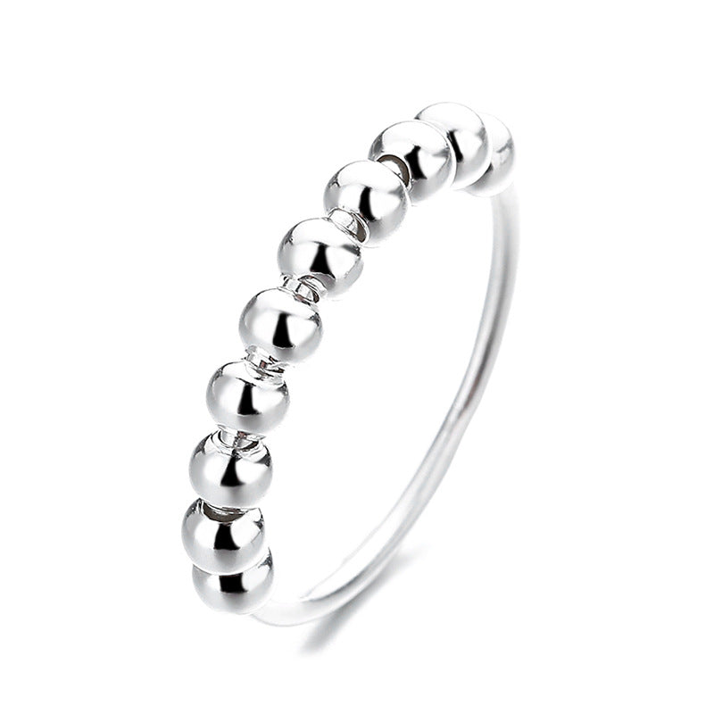 Geometric Sterling Silver Plated Beaded Stress Relief Ring
