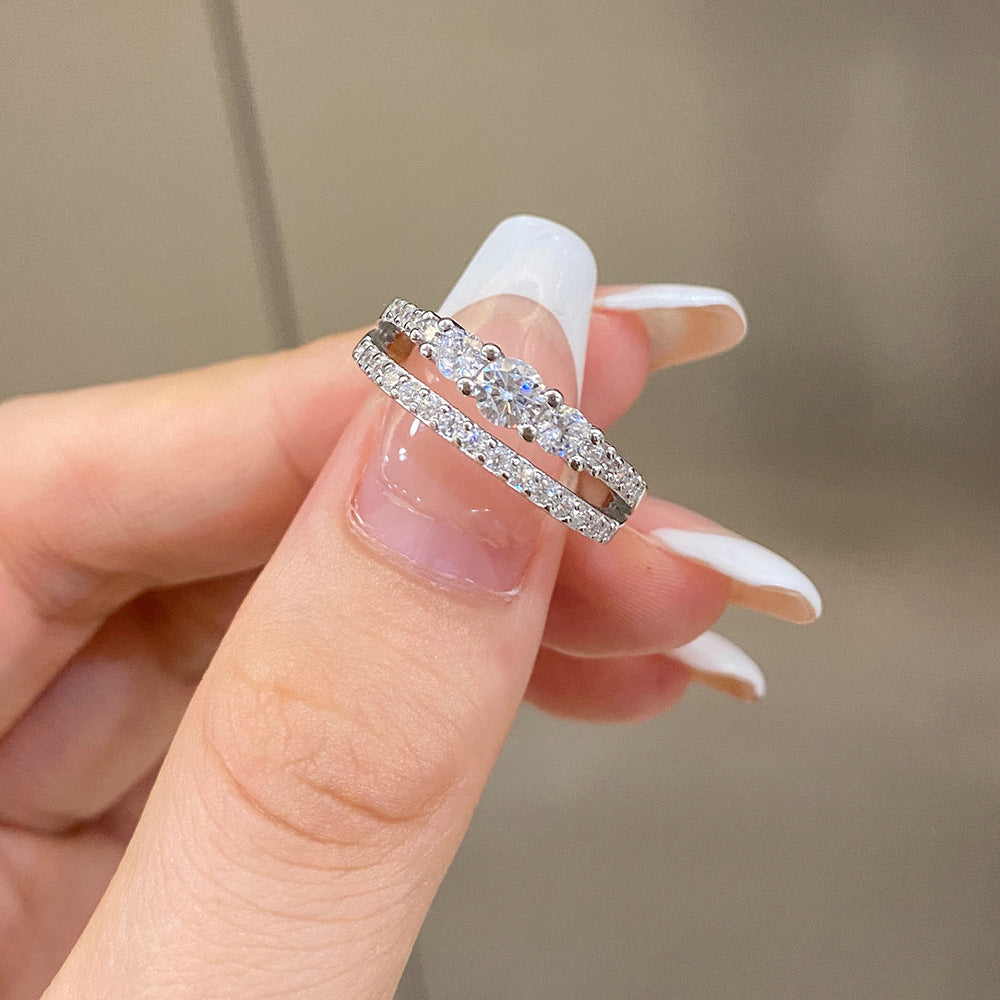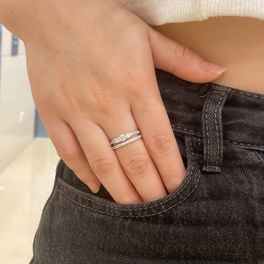 Geometric Sterling Silver Zircon Double Layer Ring for Women