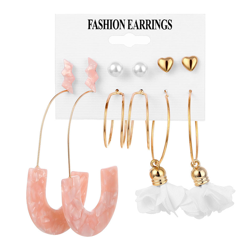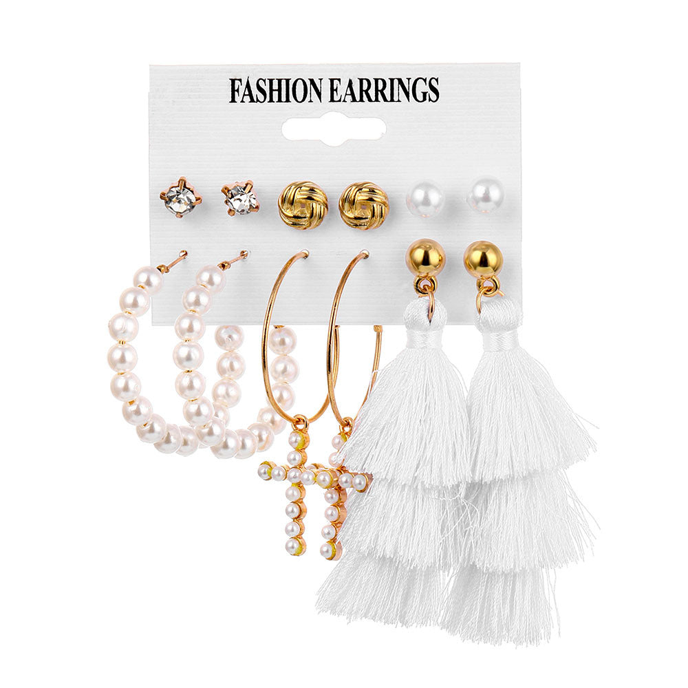 Fashion Geometric Tassel Butterfly Alloy Earrings with Artificial Pearls and Rhinestones Set