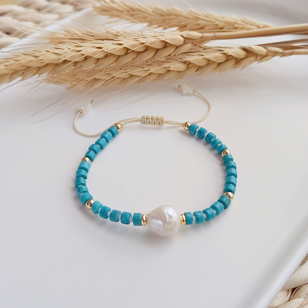 Geometric Turquoise Freshwater Pearl Bohemian Knitted Bracelet