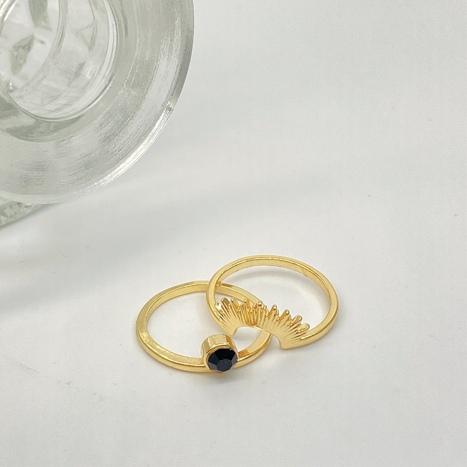 18k Gold Plated Stainless Steel Black Agate Sunflower Ring