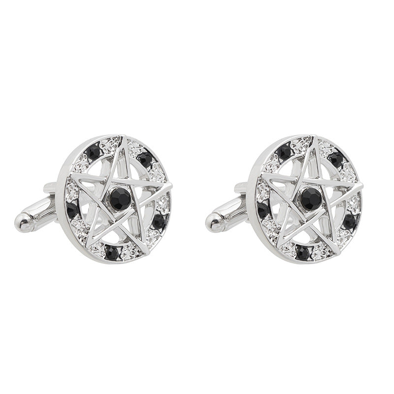 Fashion Star Skull Titanium Steel Cufflinks with Crystal Accents