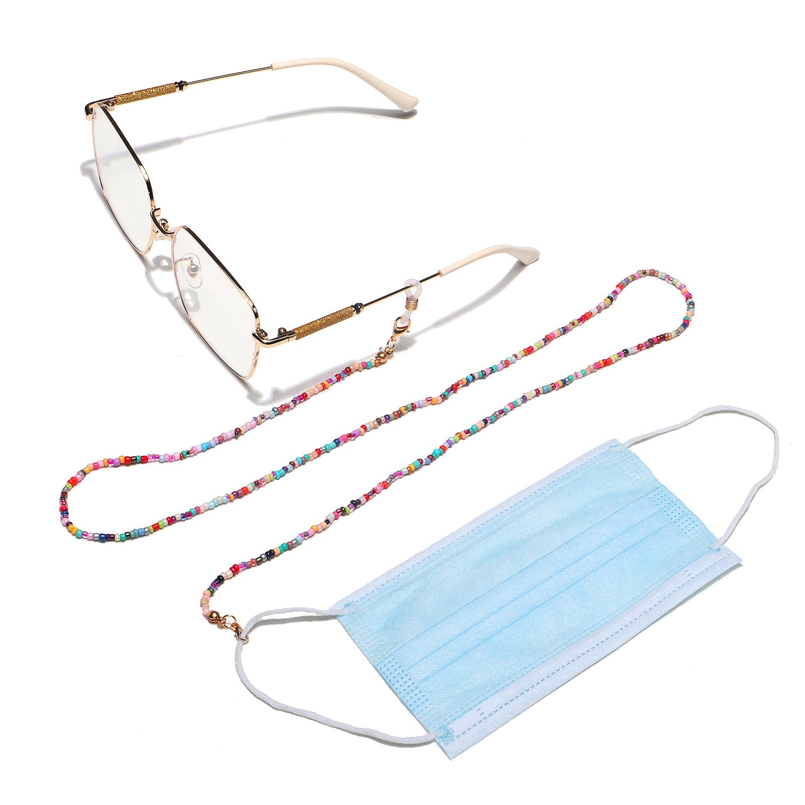 Fashion Handmade Mixed Color Rice Bead Glasses and Mask Chain Necklace