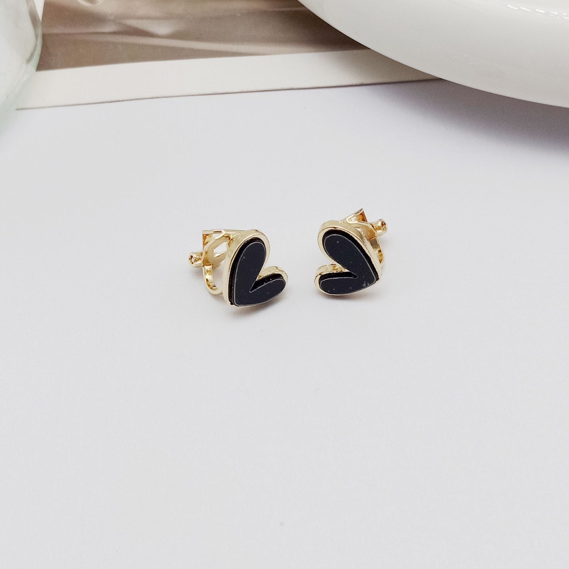 Elegant Blue Heart Enamel Alloy Ear Clips and Studs