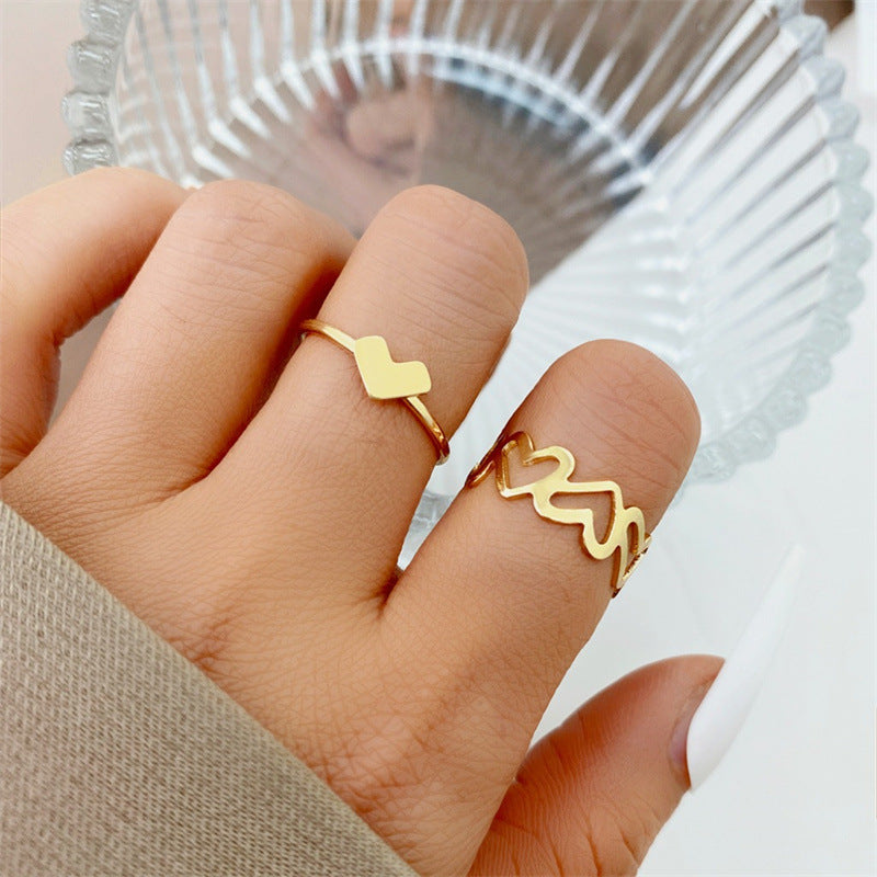 Heart Shape Hollow Out Women's Open Ring Set - Minimalist Creative Design