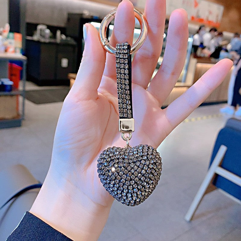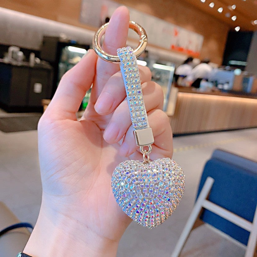 Fashion Crystal Heart Acrylic Rhinestone Keychain Pendant for Women